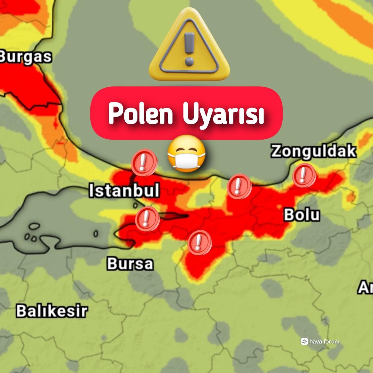 Hava Forum'a göre; Alerji riski İstanbul, Kocaeli, Yalova, Sakarya, Bolu, Bilecik, Düzce, Zonguldak'ta en yüksek seviyeye çıkacak.
