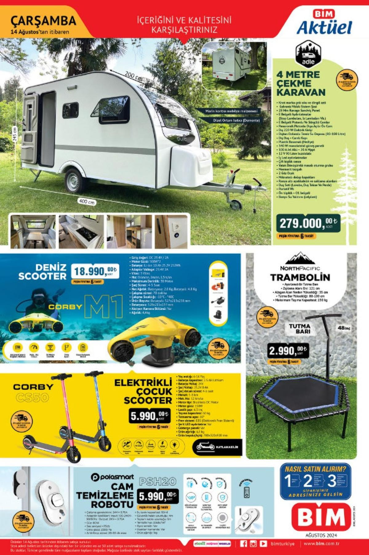 Bu sefer markete tiny house, deniz scooter, trambolin, cam temizleme robotu, buzdolabı ve çamaşır makinesi gibi birbirinden farklı ürünler getiriyor.