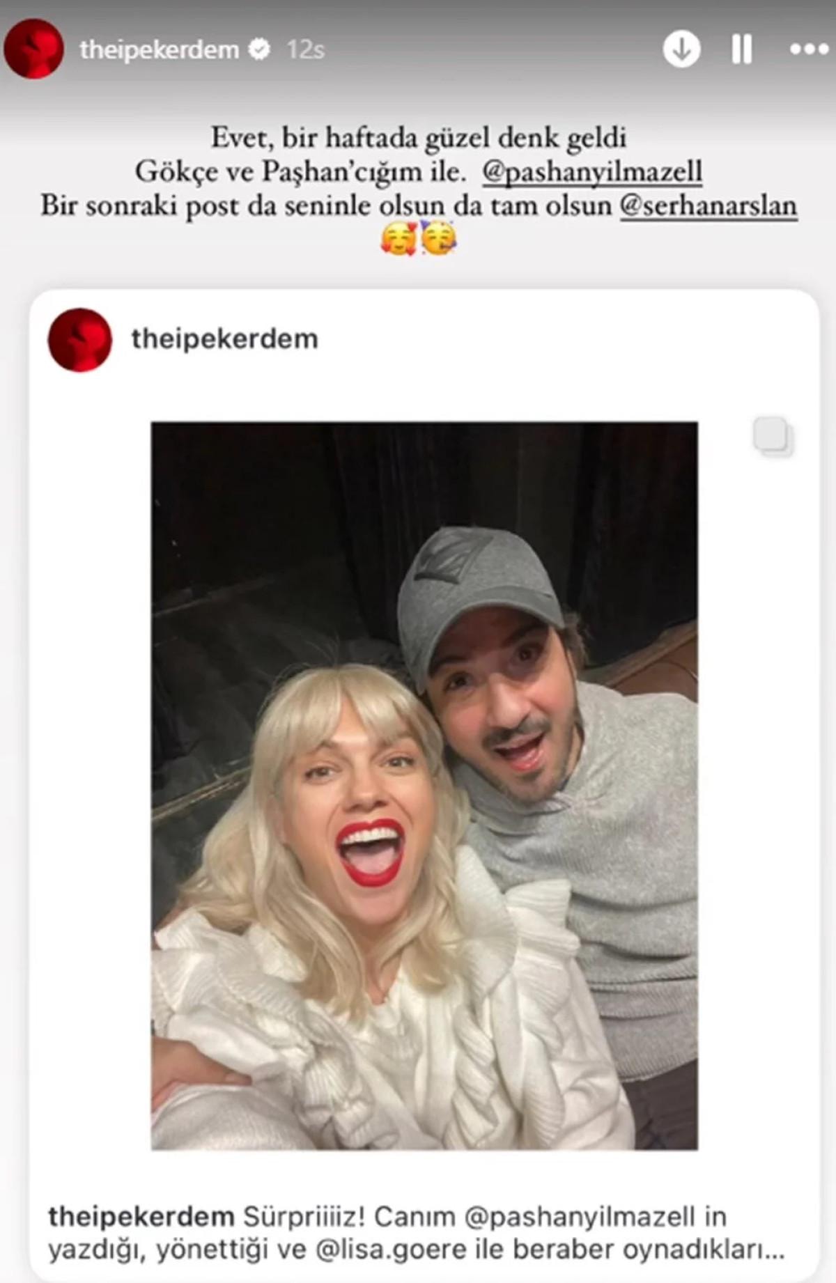 İpek Erdem, Yılmazel'le fotoğraf paylaşarak, "Sürpriz! Canım Paşhan Yılmazel'in yazdığı, yönettiği ve Tuana Goere ile beraber oynadıkları Juliet oyununu izledim. Uzun zamandır görüşememiştik. İyi oldu Paşoşum! Şükür kavuşturana. Seni seyretmek, yeniden bir arada olmak çok güzel" notunu düştü.
