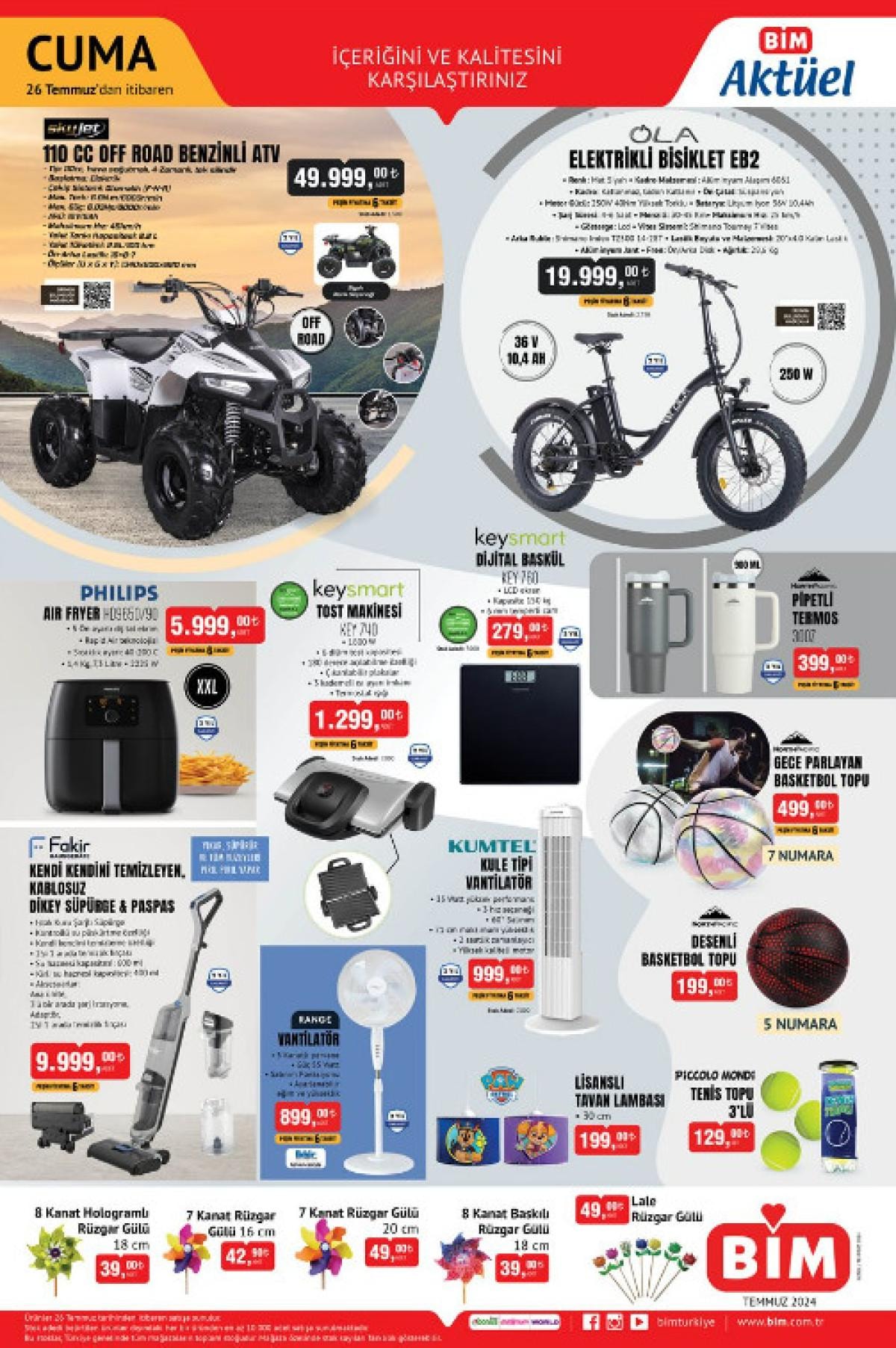 Bu hafta BİM raflarında, benzinli ATV’den elektrikli bisiklete, kule tipi vantilatörden dijital basküle kadar pek çok ilginç ürün bulabilirsiniz.