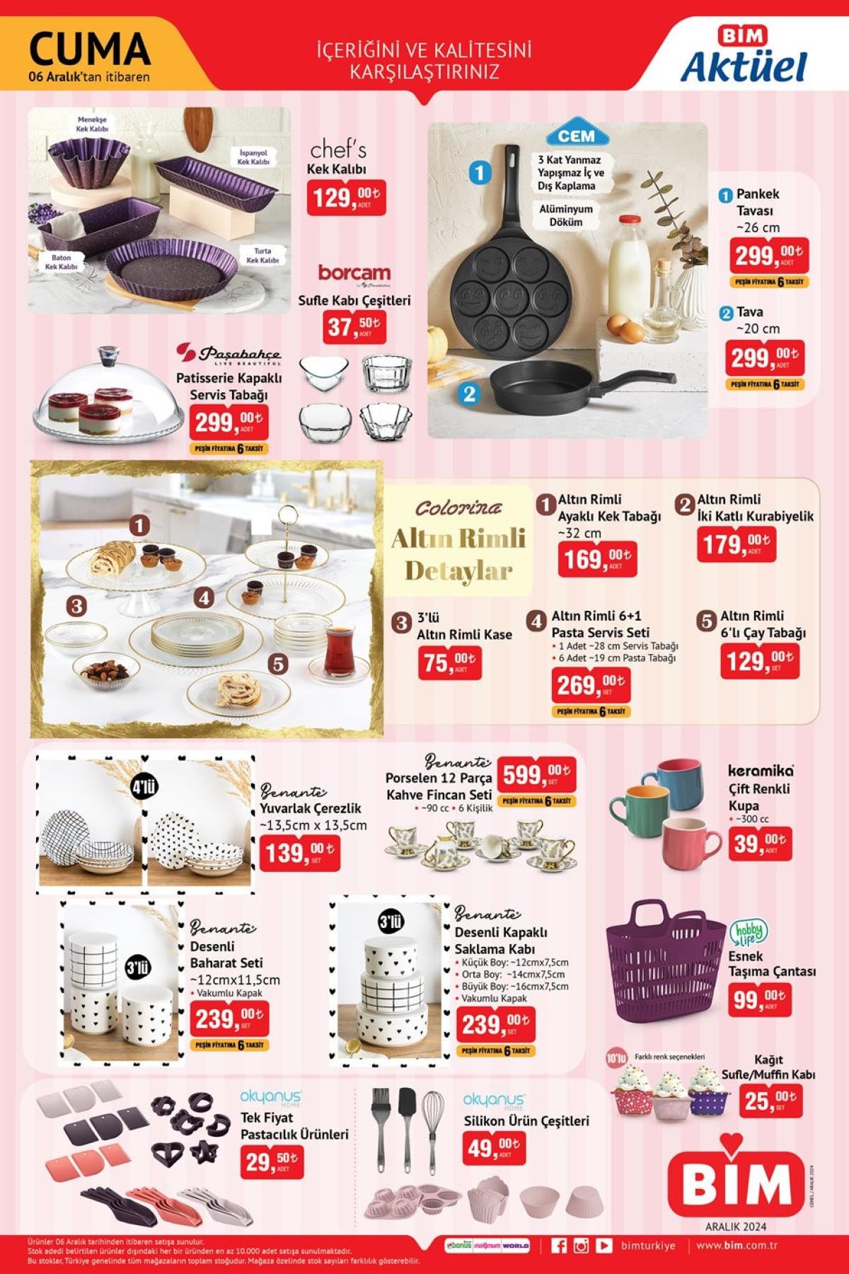 Mutfakta pratik çözümler arayanlar için ayrıca pankek tavası, kek kalıbı, tava ve şık tasarımlı fincan seti de satışa sunulacak.