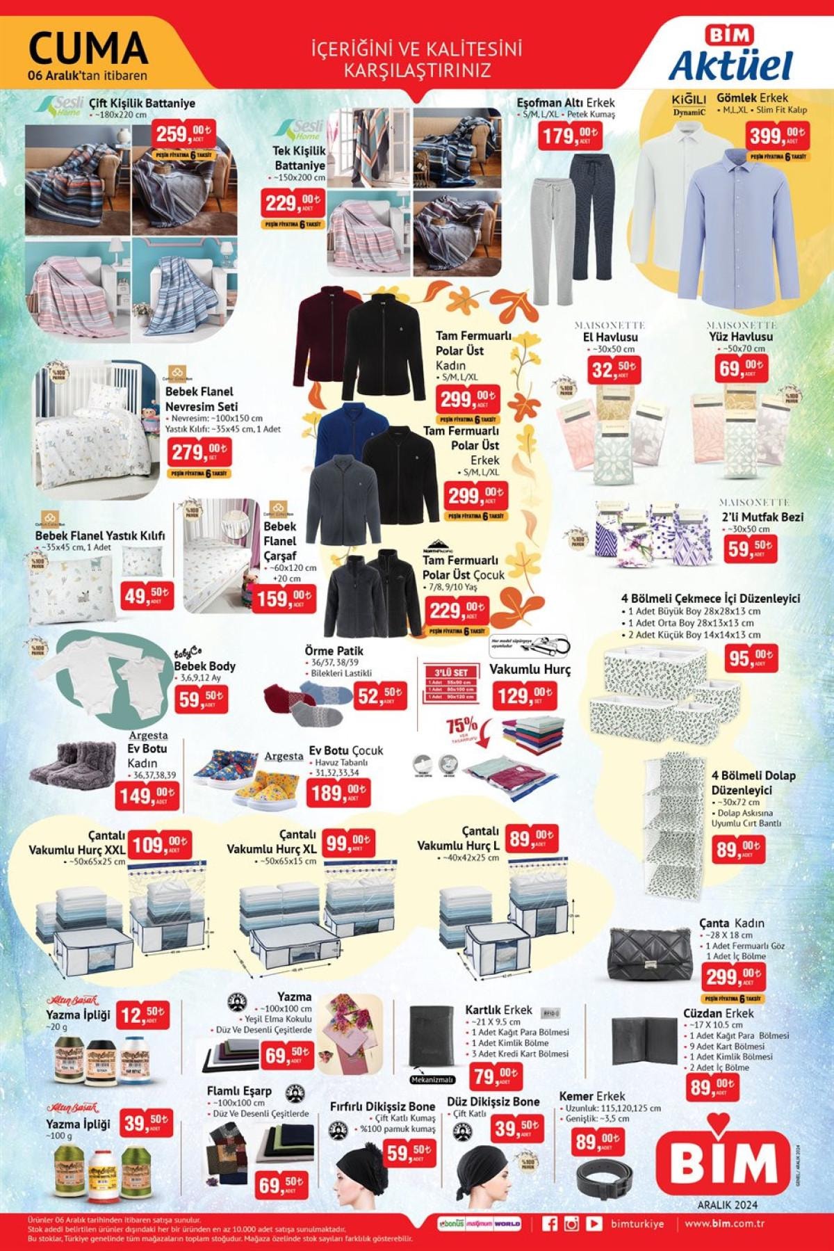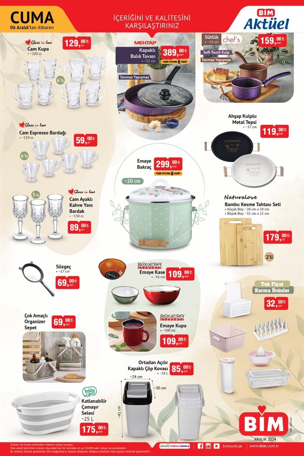 İhtiyaçlarınıza uygun ürünleri kaçırmamak için 6 Aralık Cuma günü BİM mağazalarına uğramayı unutmayın.