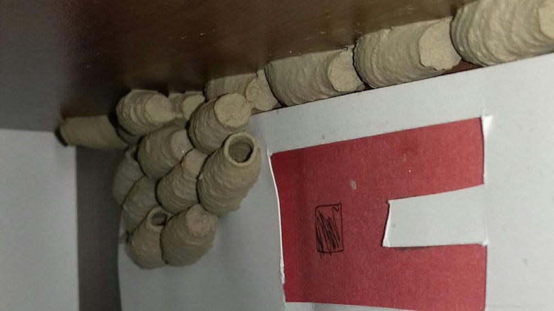 Bir yaban arısı türü olan siyah ve sarı renkli Sceliphron caementarium,çenesiyle ve ön ayaklarıyla topladığı çamuru boru şekline getirerek, pencere kenarlarına, kitaplara daha doğrusu kuru yerlere bırakıyor.
