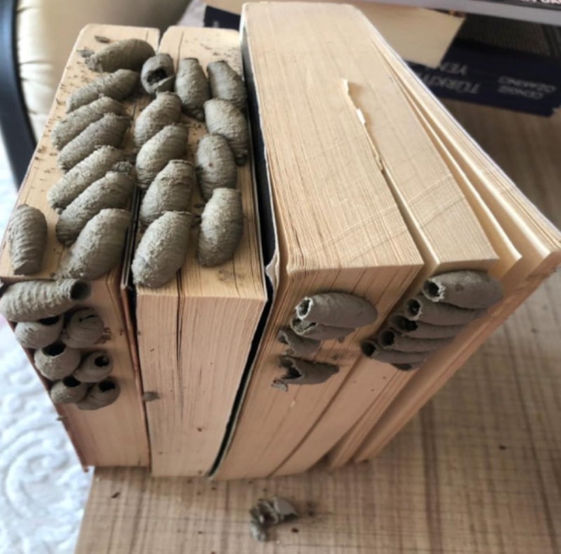 Bir X kullanıcısı, uzun süre havalandırmadığı ve temizlemediği kitaplarının fotoğrafını paylaştı. Kitapların kenarında yer alan kilden yuvacıklar adeta görenleri şoke etti.