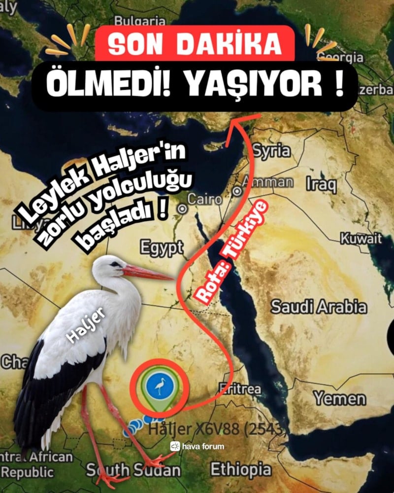 Hava Forum'un X hesabında yer alan paylaşıma göre Leylek Jonas'ın oğlu Leylek Haljer'den haber geldi.