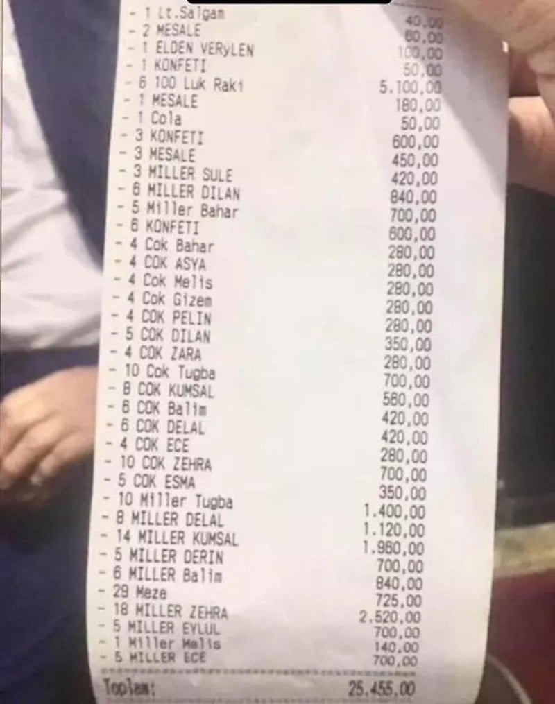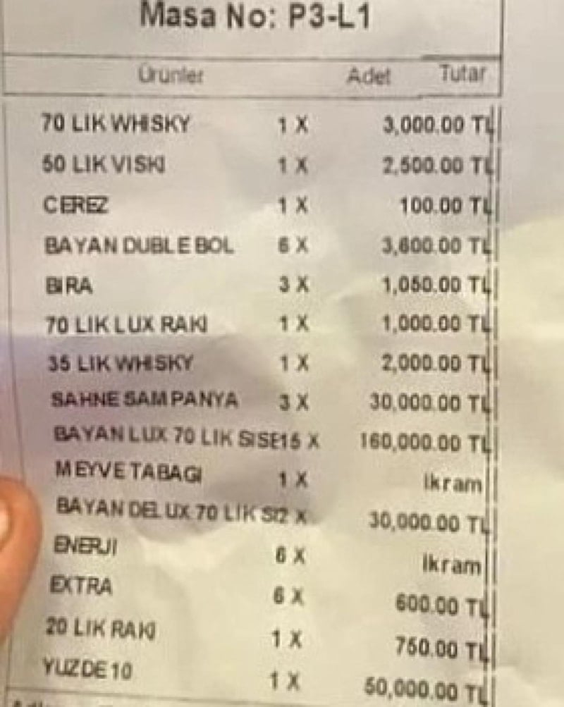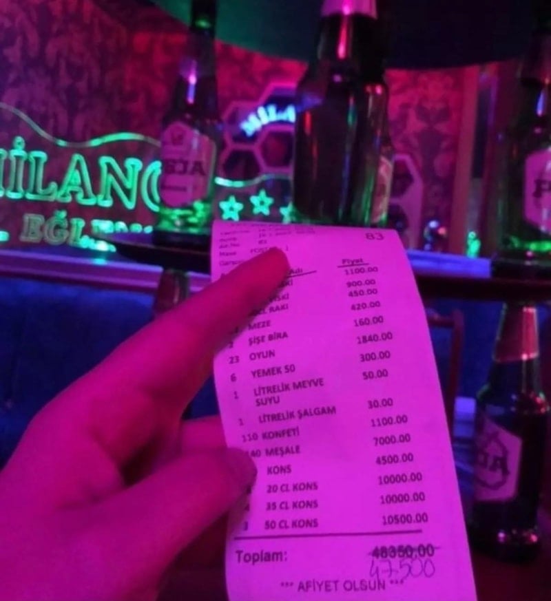 Sosyal medyada paylaşılan pavyon adisyonlarına bakarak ortalama bir fikir edinebilirsiniz.