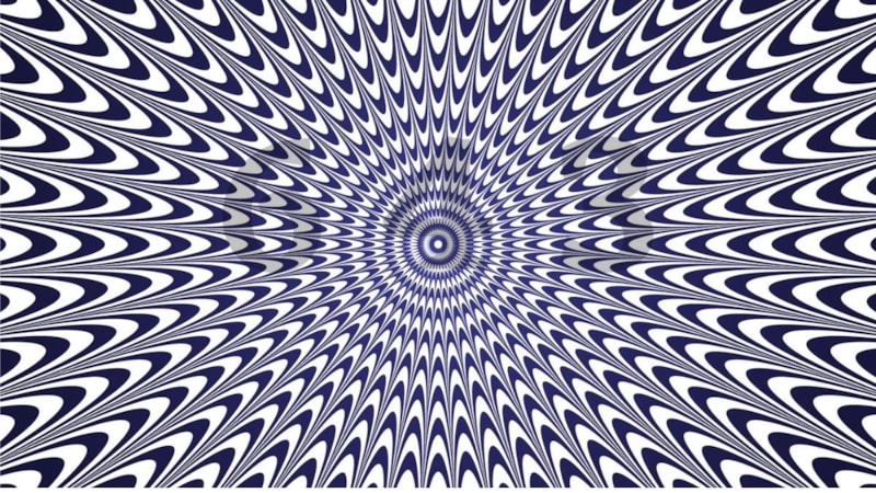 Görüntü tamamen statik olmasına rağmen, merkezden dışa doğru titreşiyor, dönüyor veya hareket ediyor gibi görünüyor.