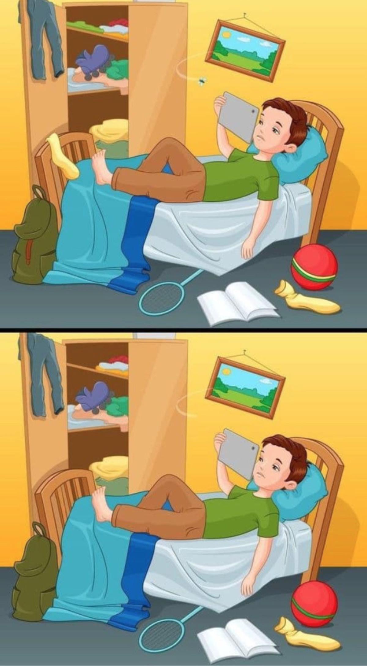 Yatağında tablet ile oynanan çocuğun yer aldığı aynı iki resim arasındaki 7 farkı bulmanızı istiyoruz.