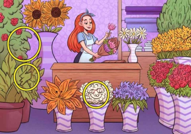 Bu optik illüzyon en büyük meydan okumadır! Bu güzel çiçekçinin dükkanında üç yüz gizlidir—ancak insanların yalnızca %1'i onları sadece 5 saniyede bulabilir.