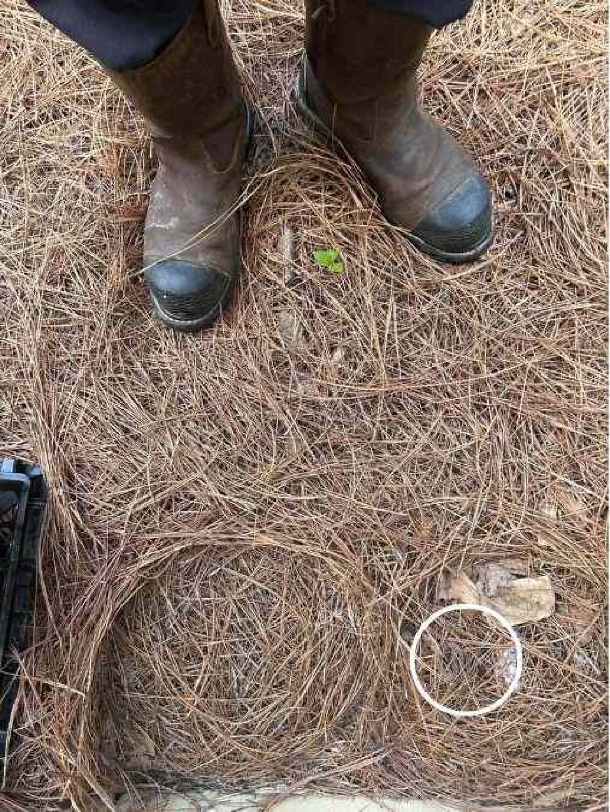 Kuru çam iğneleri ve çizmeleriyle ayakta duran bir adamın yer aldığı bu resimde, göz önünde ustaca saklanan bir yılan var. Şimdi onu fark etme sırası sizde.
