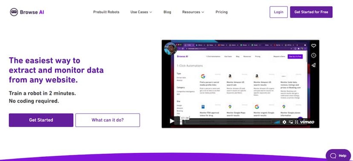 Rekabetinizi izlemek, bir web sitesinden veri çıkarmak ve piyasayı araştırmak için değerli bir yapay zeka aracı olan Browse AI, tüm kullanıcılar tarafından ücretsiz olarak kullanılabilir.