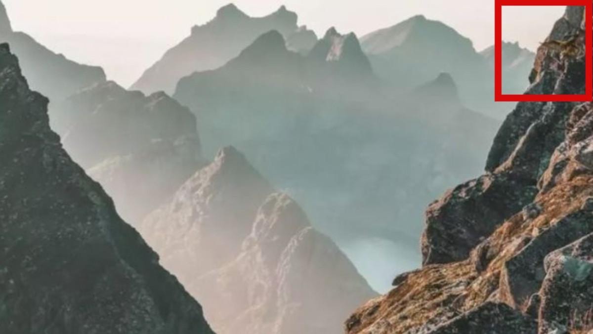 Resimde dağlık bir alan yer alıyor. Ve bu görselin içerisinde gizlenmiş bir kartal var.