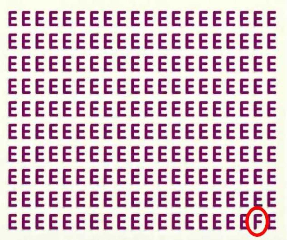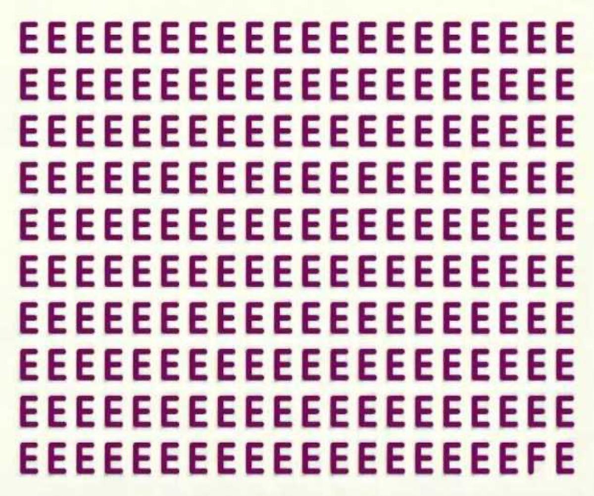 Bugünkü görsel illüzyon testinde ise, onlarca E harfinin arasına ustaca gizlenmiş bir F harfi bulunuyor.