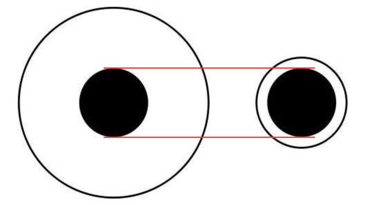 Her iki siyah daire de aynı boyutta. Bu, aynı boyutta iki siyah dairenin bulunduğu ünlü Delbeouf illüzyonu.