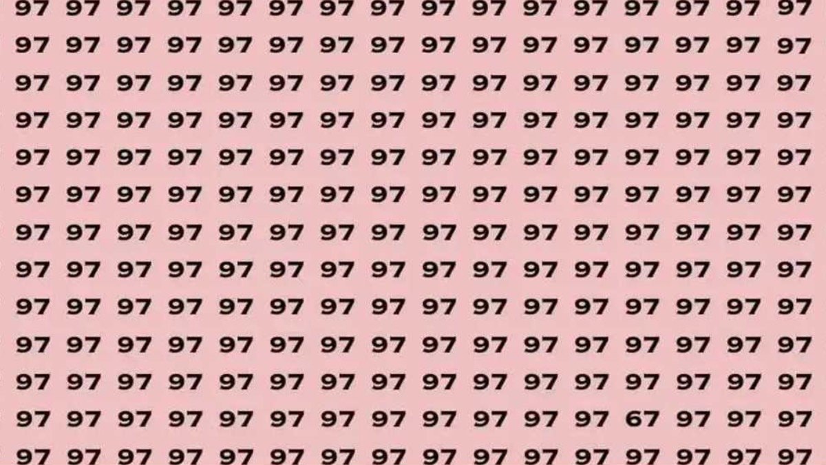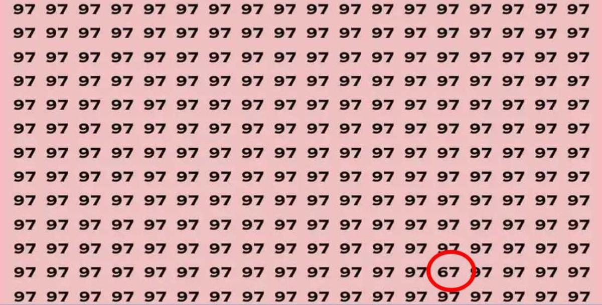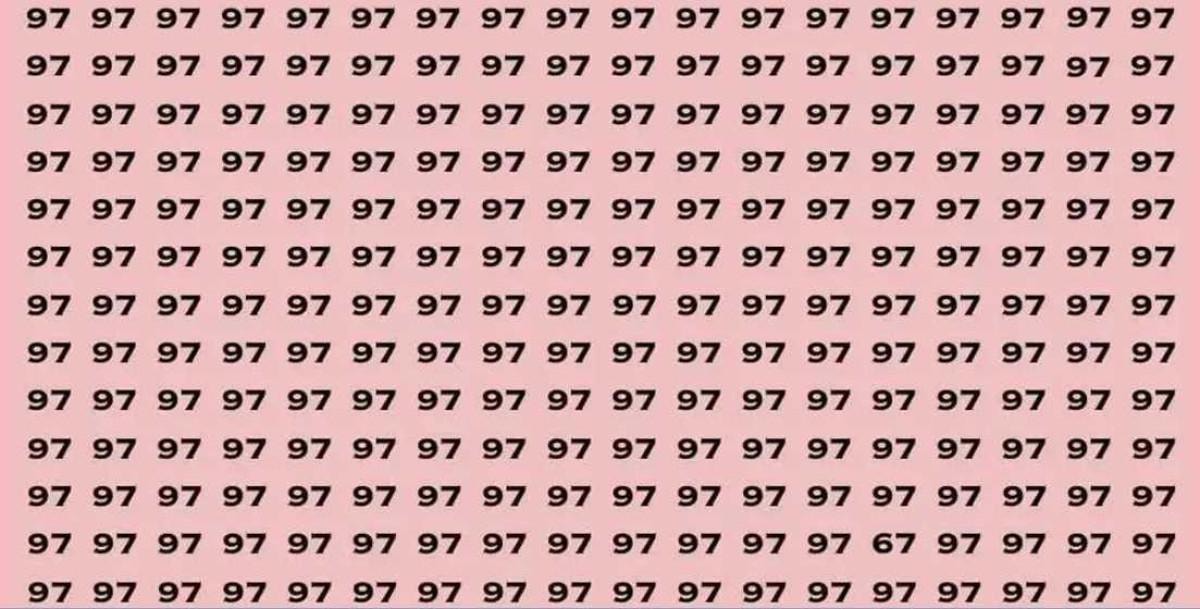 Yukarıdaki görselde 97 sayılarıyla dolu bir ızgara yer alıyor. Aralarında bir tane 67 sayısı gizli.