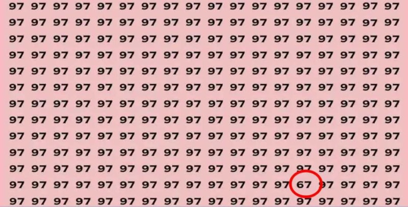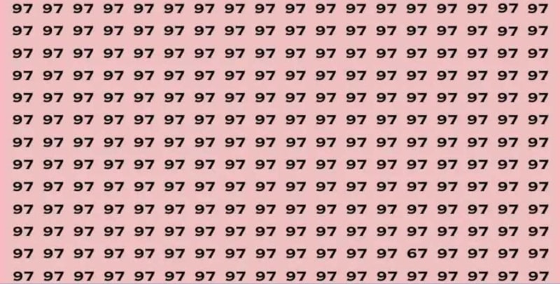 Görsel illüzyonlar, beynin ve gözlerin nasıl çalıştığına dair etkileyici bir pencere sunuyor. Bu görsel illüzyonda 97’lerin arasında 67 sayısını bulmanız isteniyor. Peki, 6 saniye içinde bulabilir misiniz?