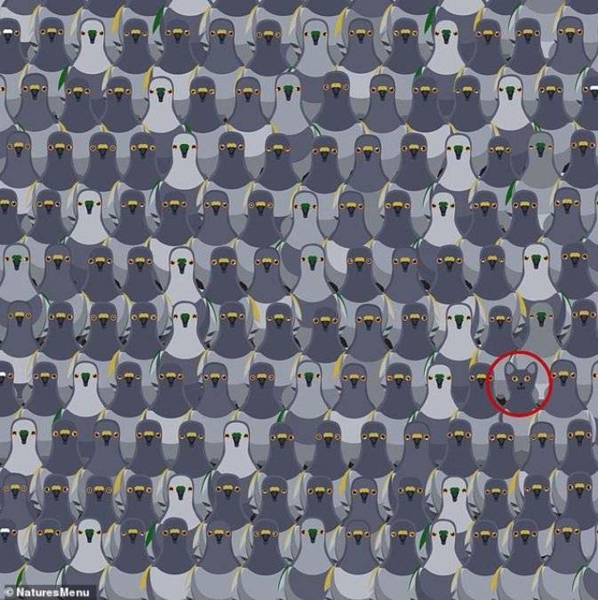Eğer hala bu resimde güvercinlerin arasına gizlenmiş kediyi arıyorsanız aşağıdaki cevaba bakın.
