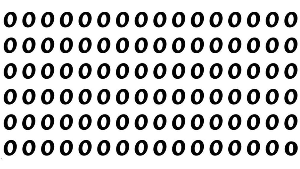 Bu basit görünen ama zekayı zorlayan illüzyon, bir sürü “O” harfi arasına gizlenmiş tek bir “0” rakamını bulmanızı istiyor.