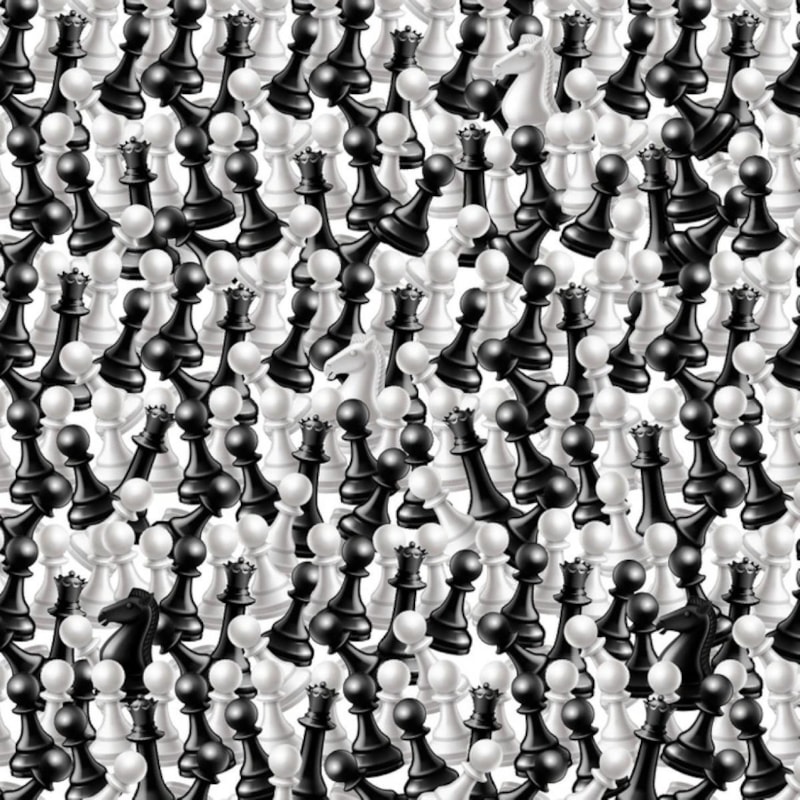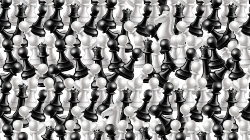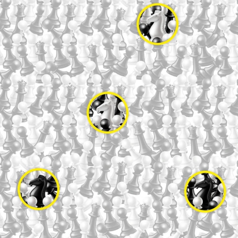 İlk bakışta optik bir illüzyon gibi görünen bu görsel, satranç becerinizi de ölçüyor. Tahtanın üzerinde yalnızca satranç taşlarından “atlar” gizlenmiş durumda.