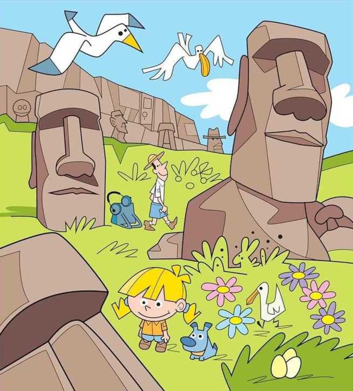 Yukarıdaki görselde Paskalya Adası'nda geziye çıkan insanların görüntüleri yer alıyor.