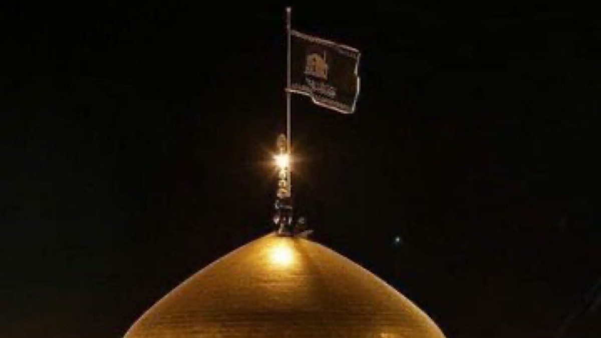 İran'ın Meşhed kentindeki Razavi türbesine "intikam" anlamına gelen kara sancak asıldı.
