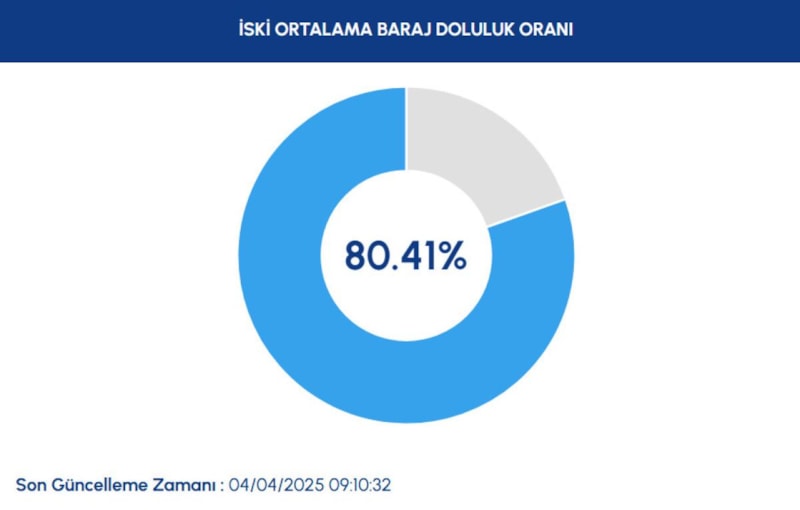 İstanbul'da bulunan tüm barajlardaki su miktarının bugün itibariyle % 80.41 olduğu açıklandı.