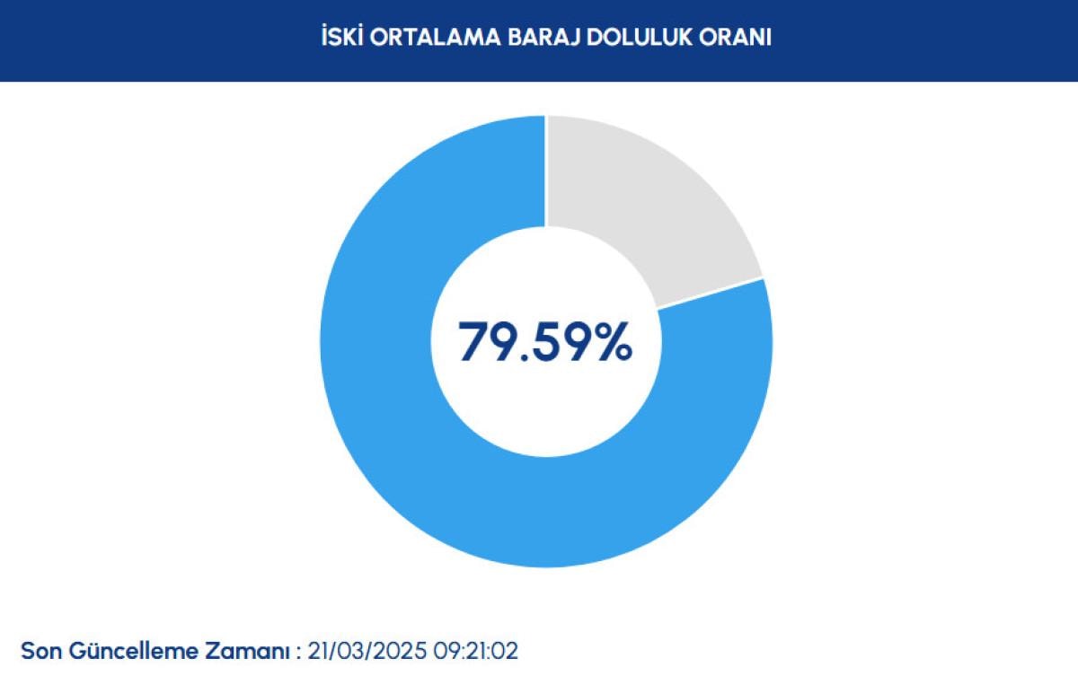 İstanbul'da bulunan tüm barajlardaki su miktarının bugün itibariyle % 79.59 olduğu açıklandı.