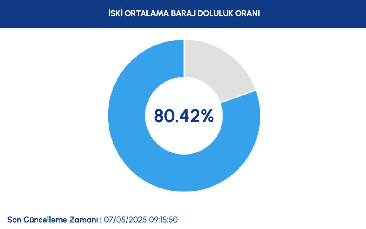 İstanbul'da bulunan tüm barajlardaki su miktarının bugün itibariyle % 80.42 olduğu açıklandı.