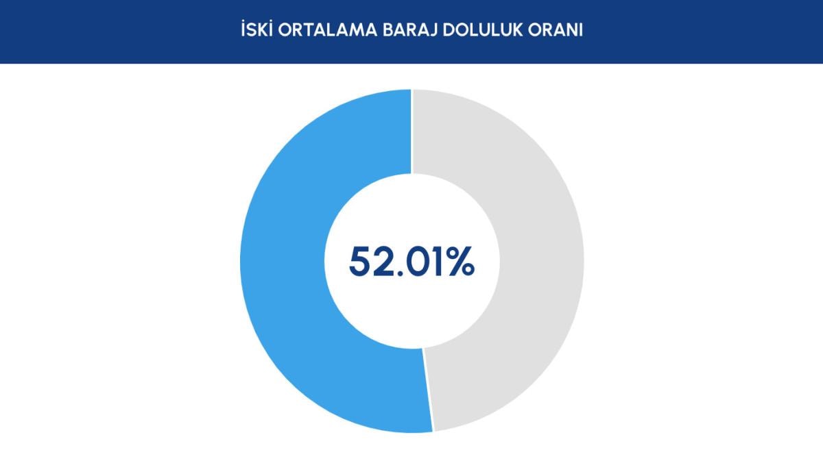 İstanbul'da bulunan tüm barajlardaki su miktarının bugün itibariyle % 52.01 olduğu açıklandı.