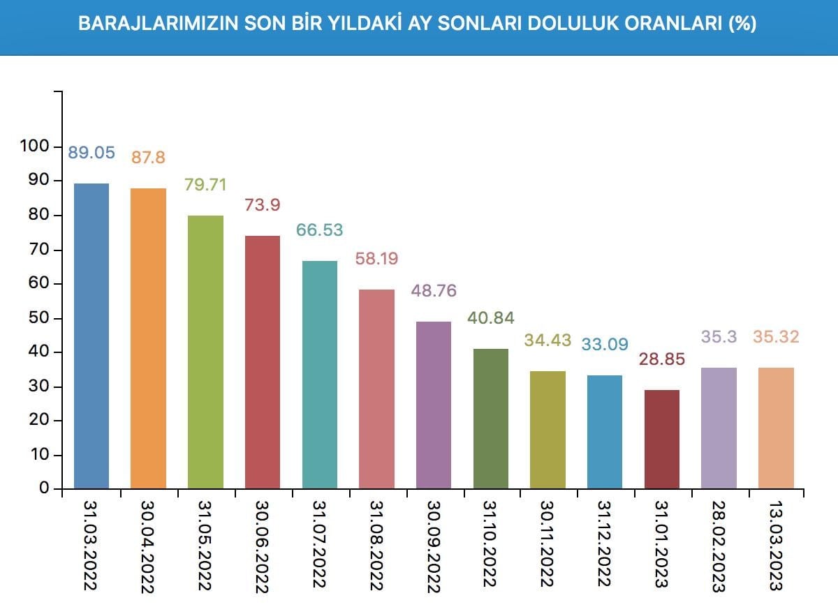 Barajların son bir yıldaki ay sonları doluluk oranları.