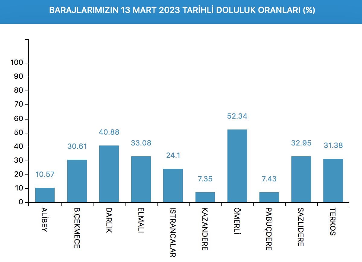 Peki İstanbul'da bulunan barajların doluluk oranı ne? İşte 13 Mart 2023 İstanbul baraj doluluk oranları..