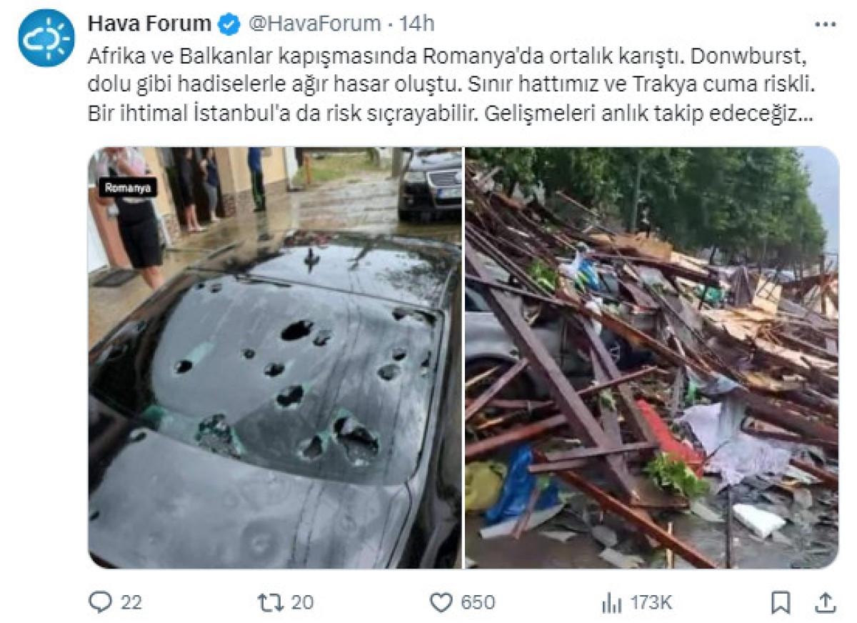İstanbul'un da risk altında olduğunu belirten Hava Forum, paylaşımında şu ifadelere yer verdi: