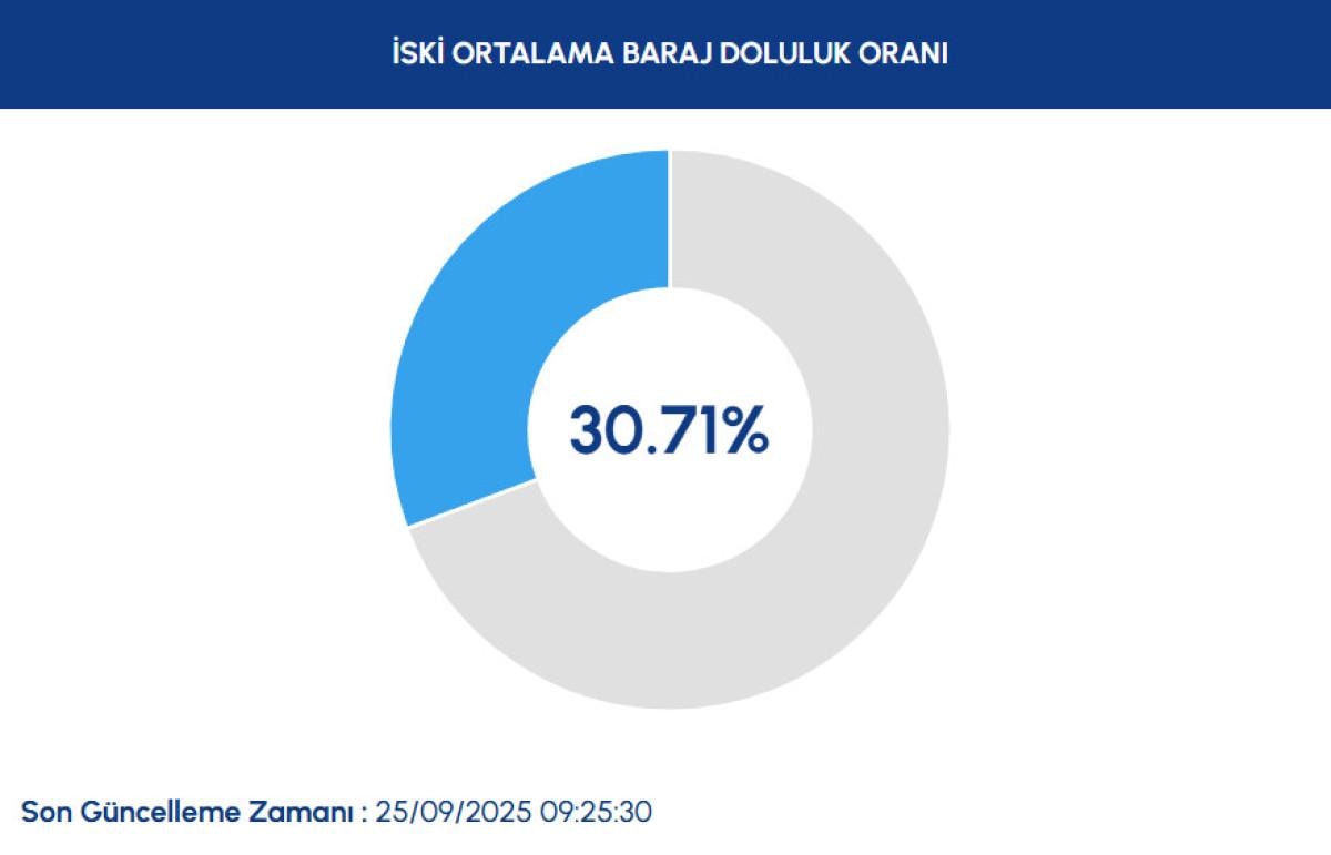 - İstanbul'da barajların doluluk oranı 25 Eylül 2025 itibarıyla %30.71 olarak açıklandı.