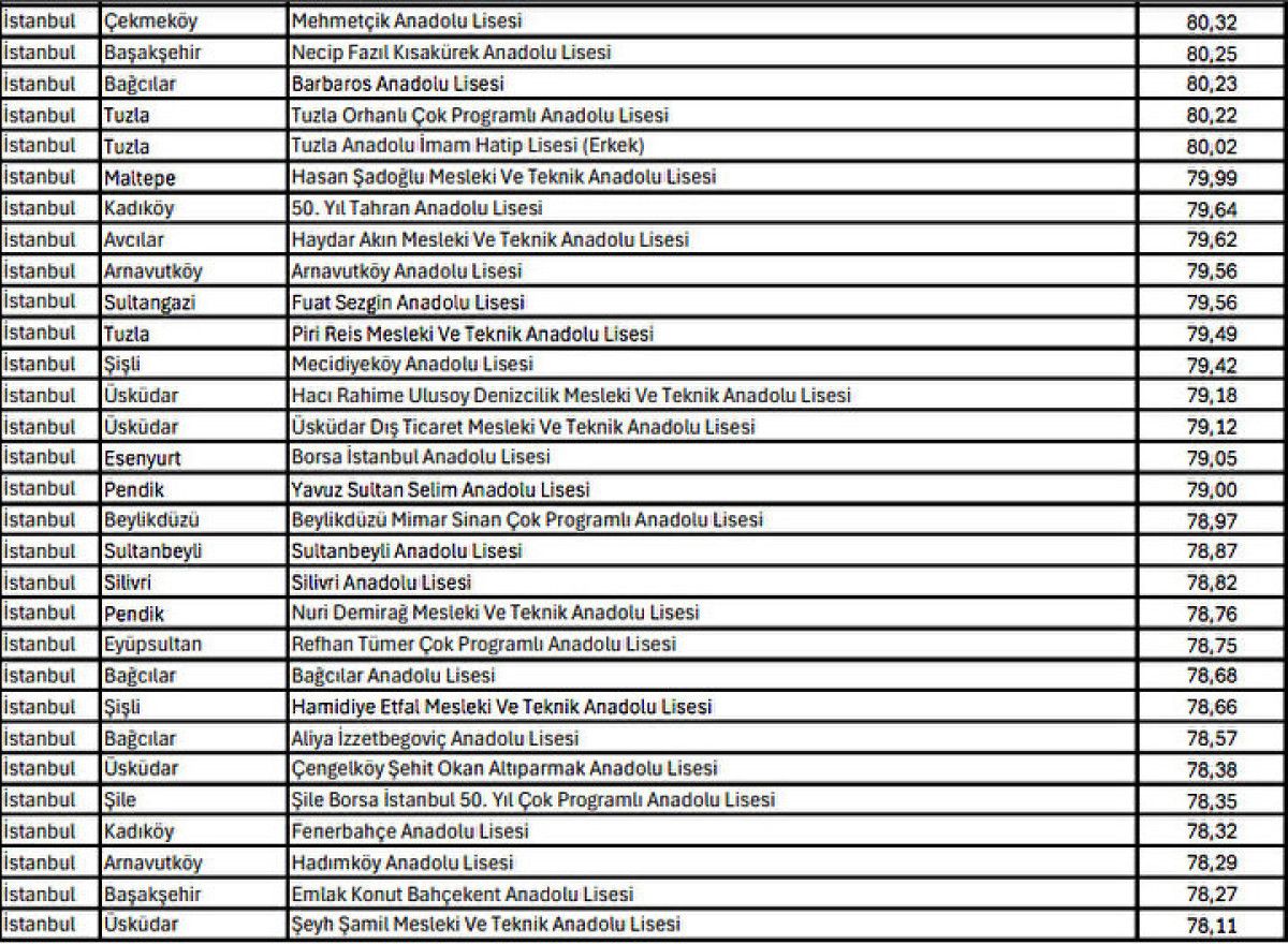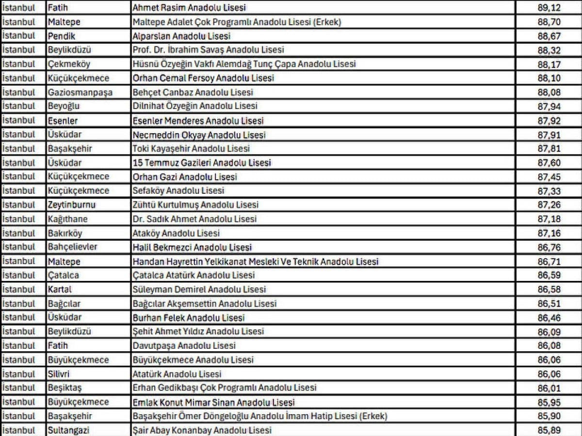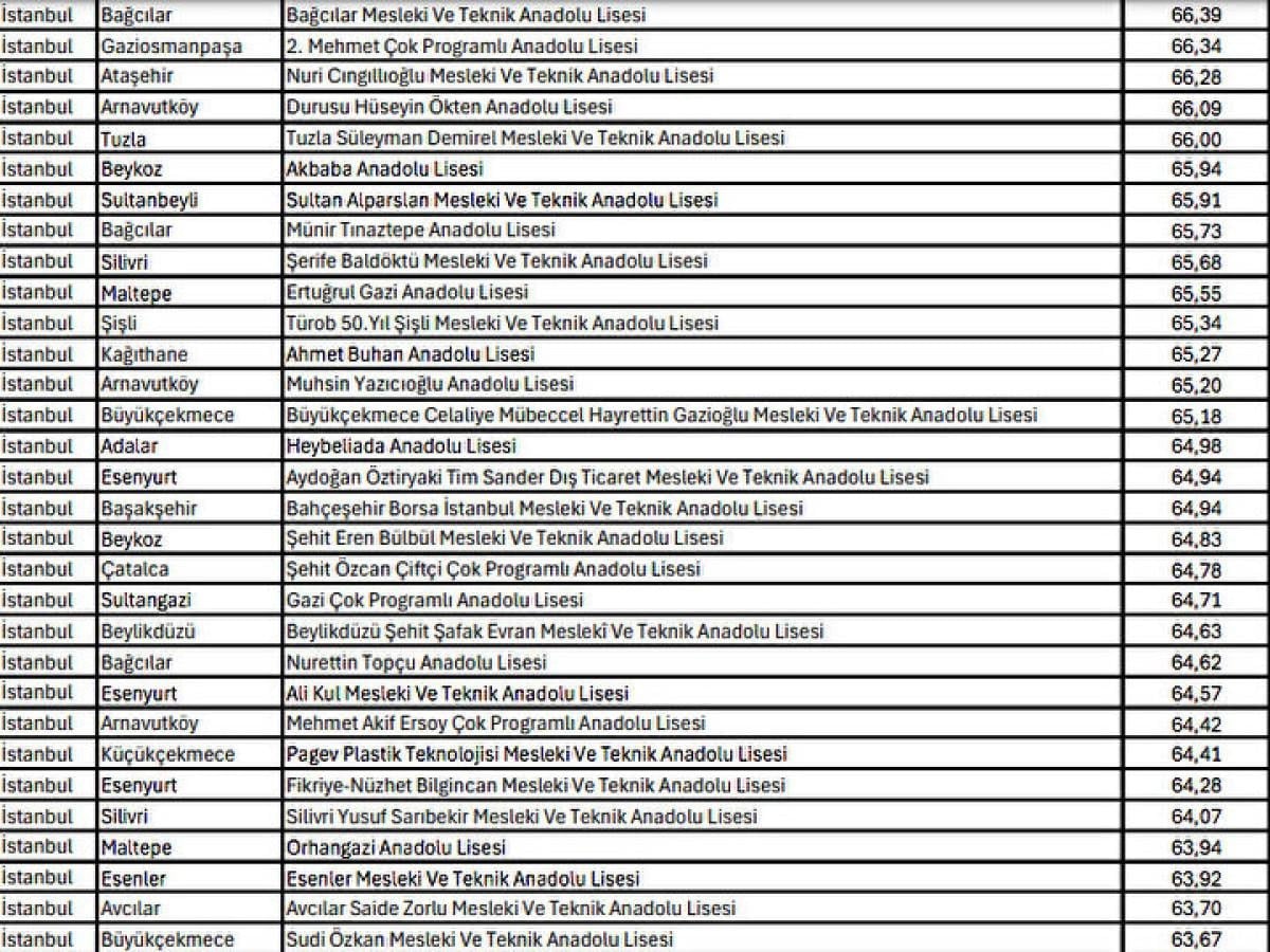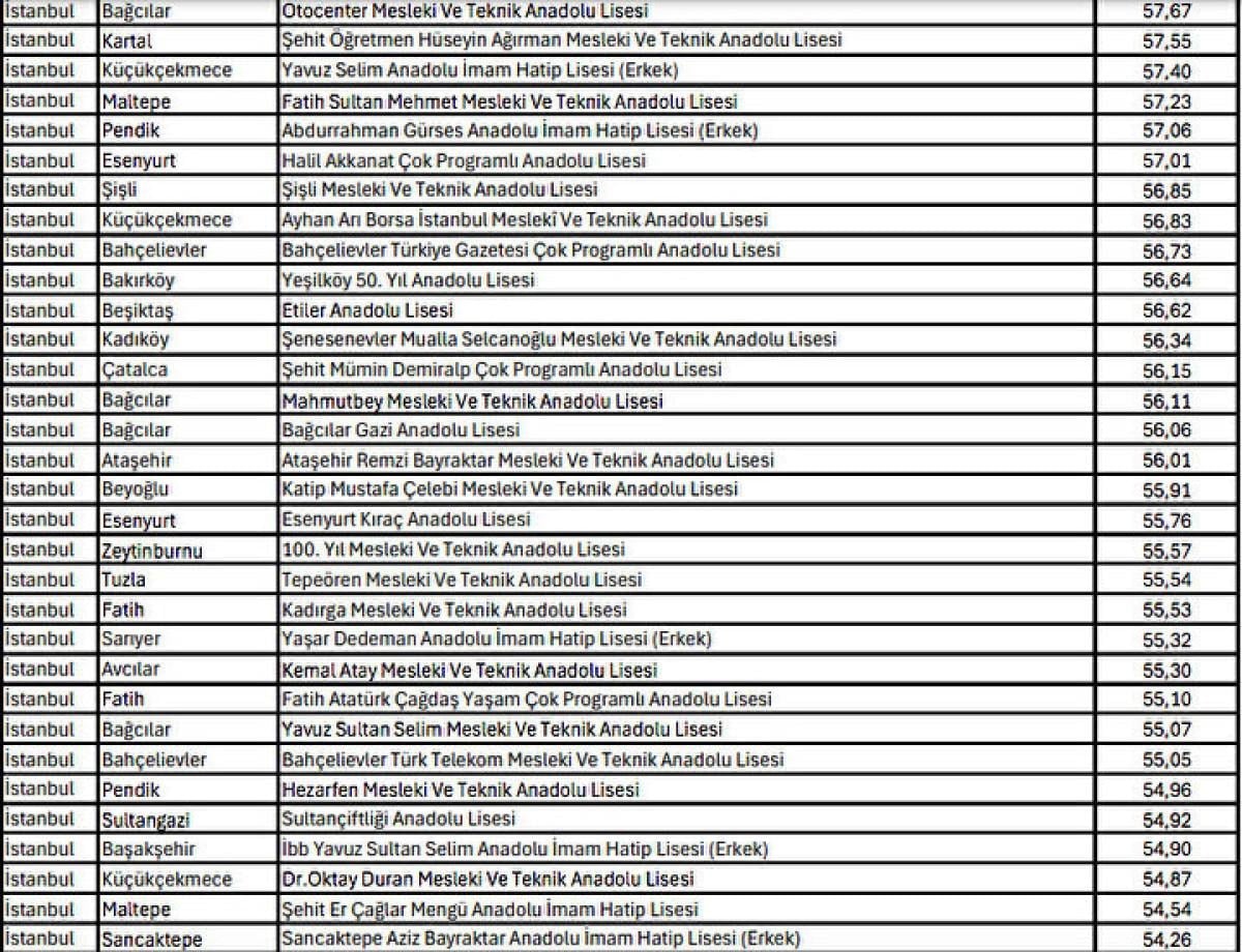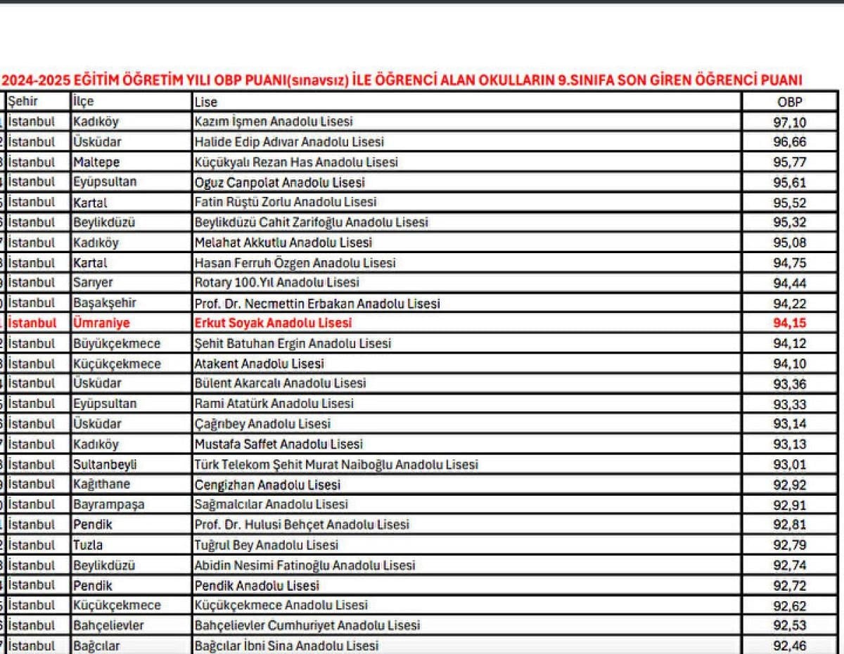 İstanbul’daki Anadolu Liseleri, Fen Liseleri, İmam Hatip Liseleri ve Mesleki Teknik Anadolu Liseleri, OBP’ye göre öğrenci kabul eden okullar arasında yer alıyor.