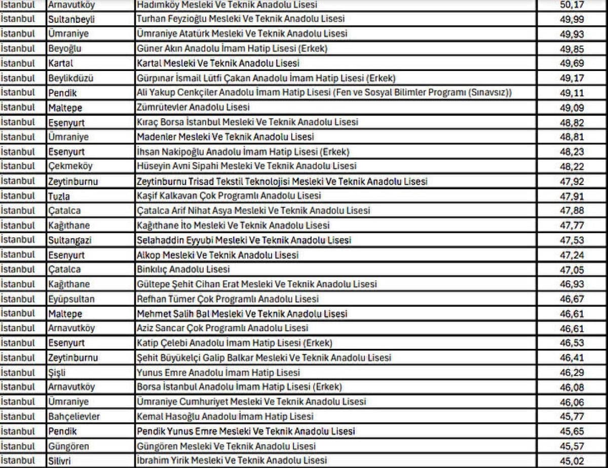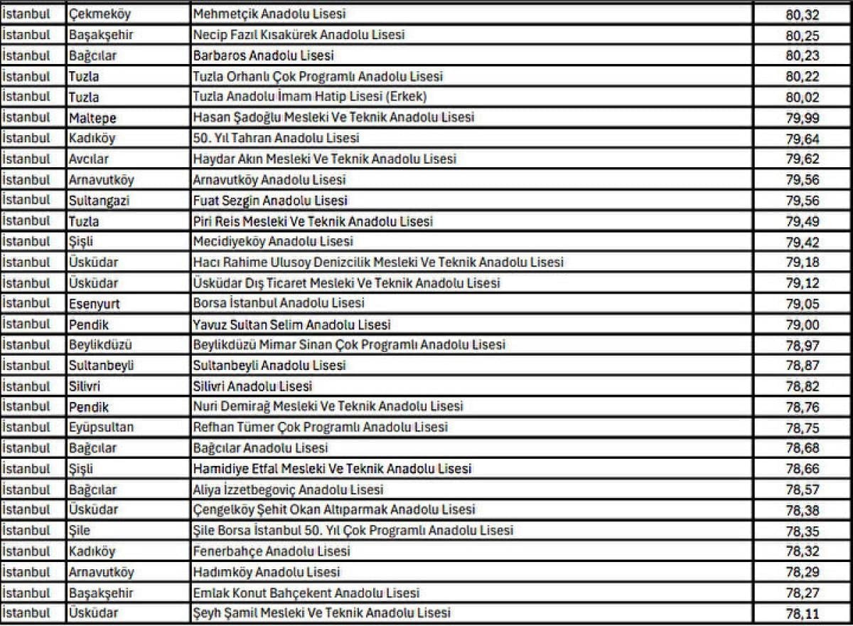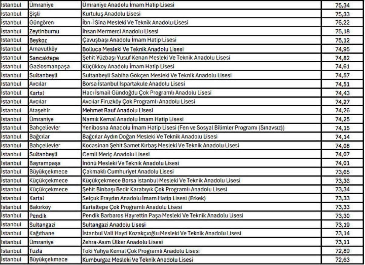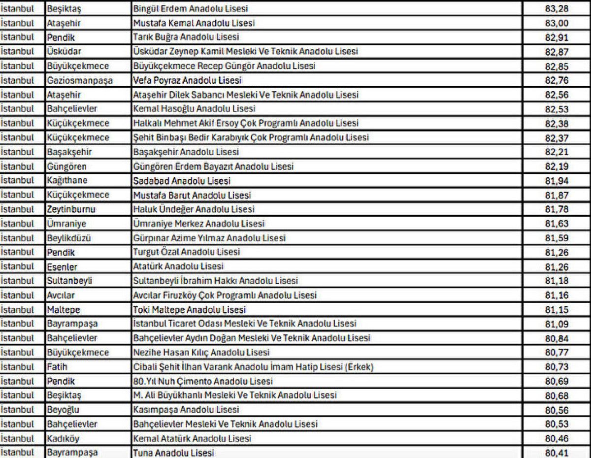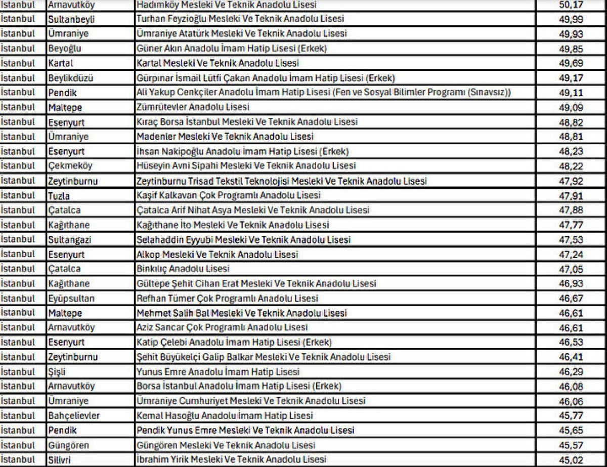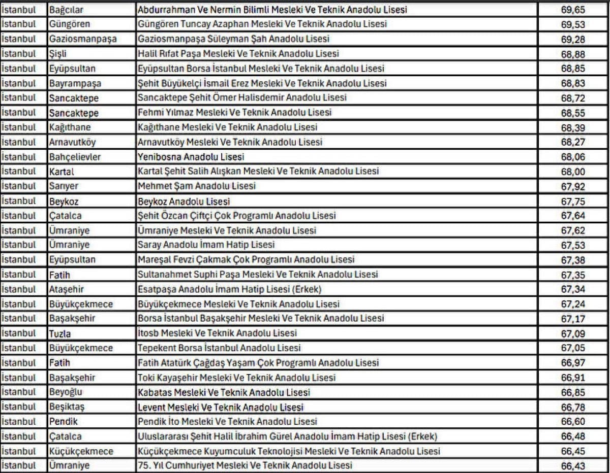 İstanbul’daki Anadolu Liseleri, Fen Liseleri, İmam Hatip Liseleri ve Mesleki Teknik Anadolu Liseleri, OBP’ye göre öğrenci kabul eden okullar arasında yer alıyor.