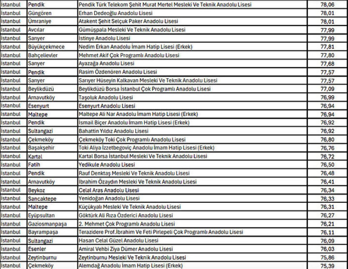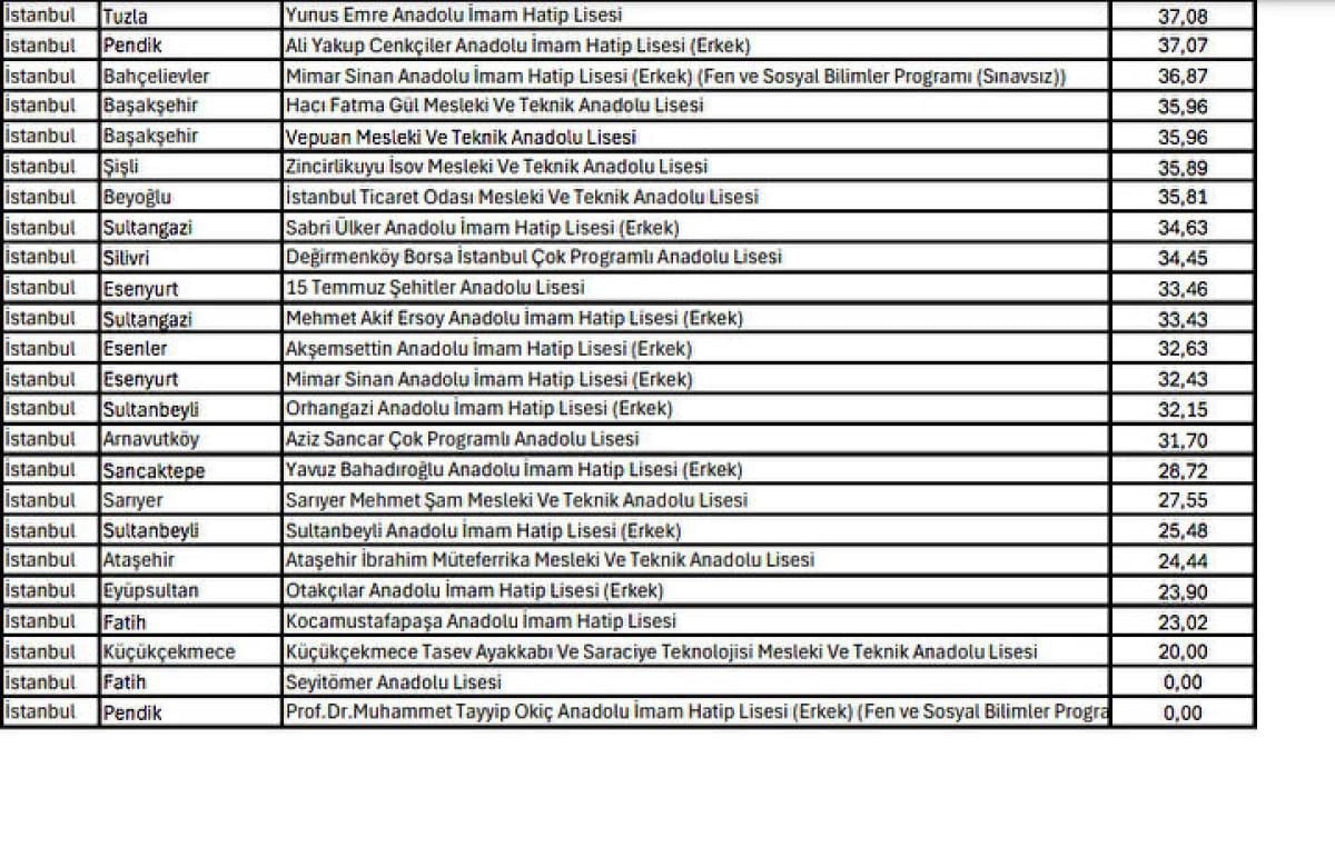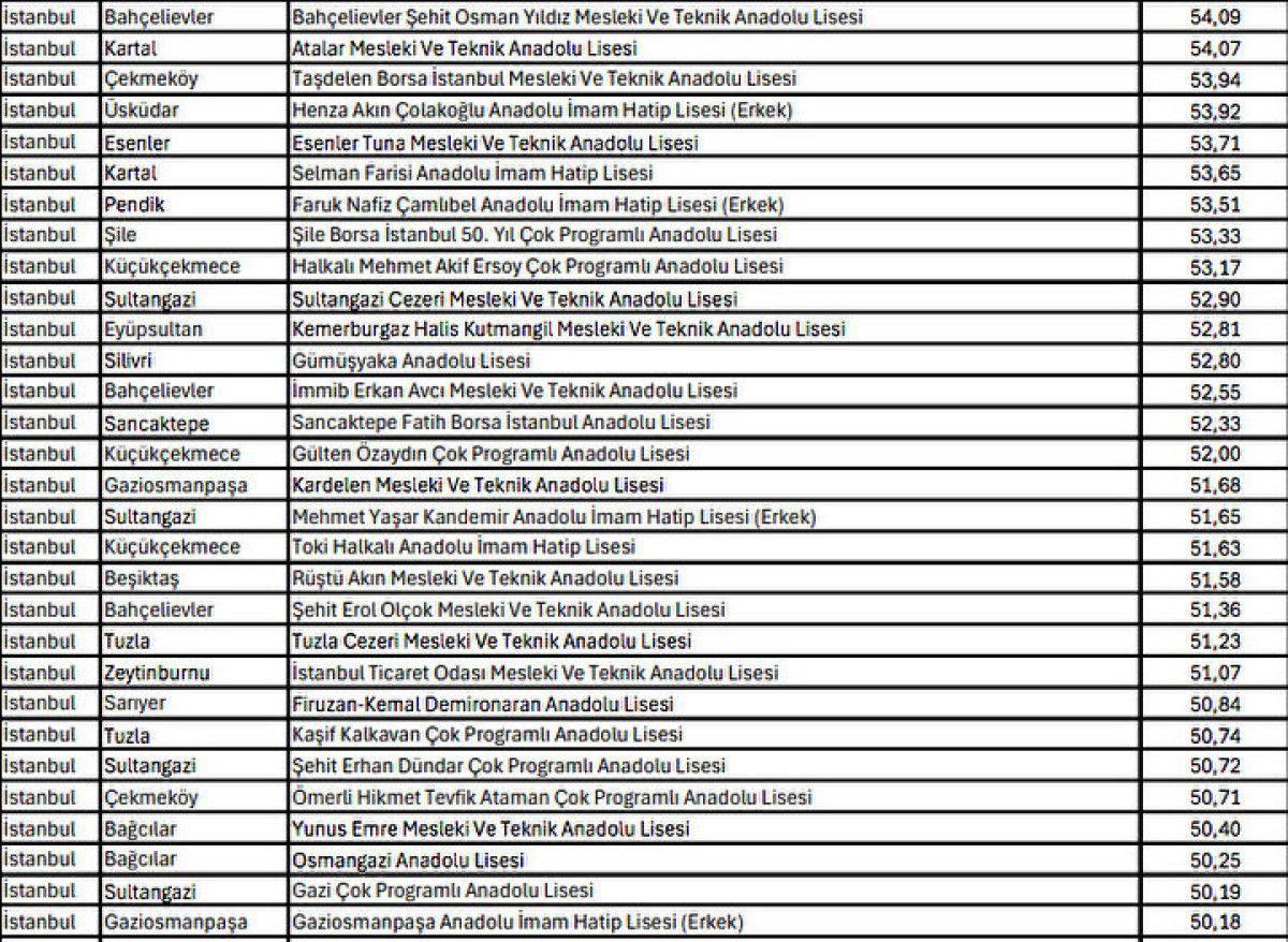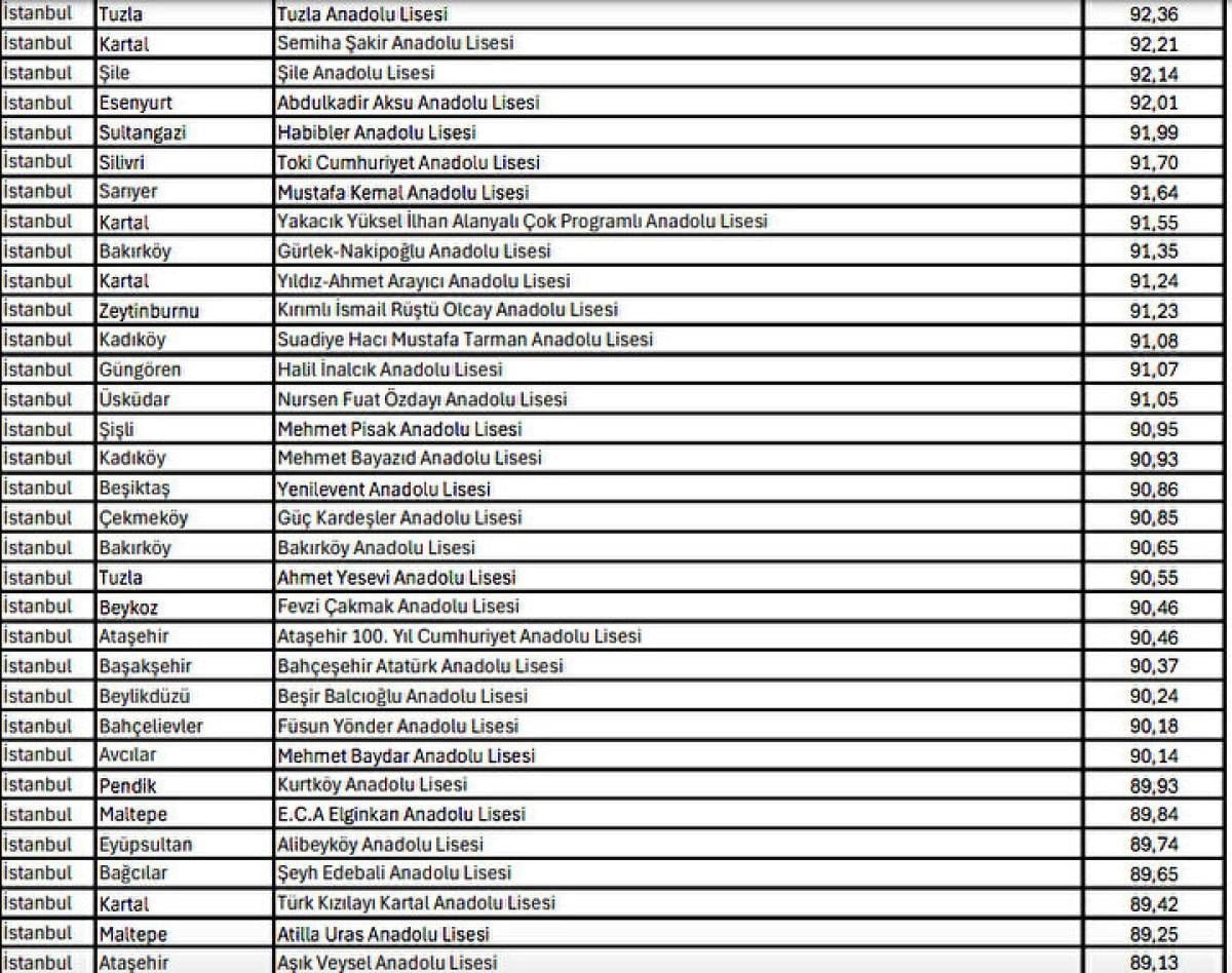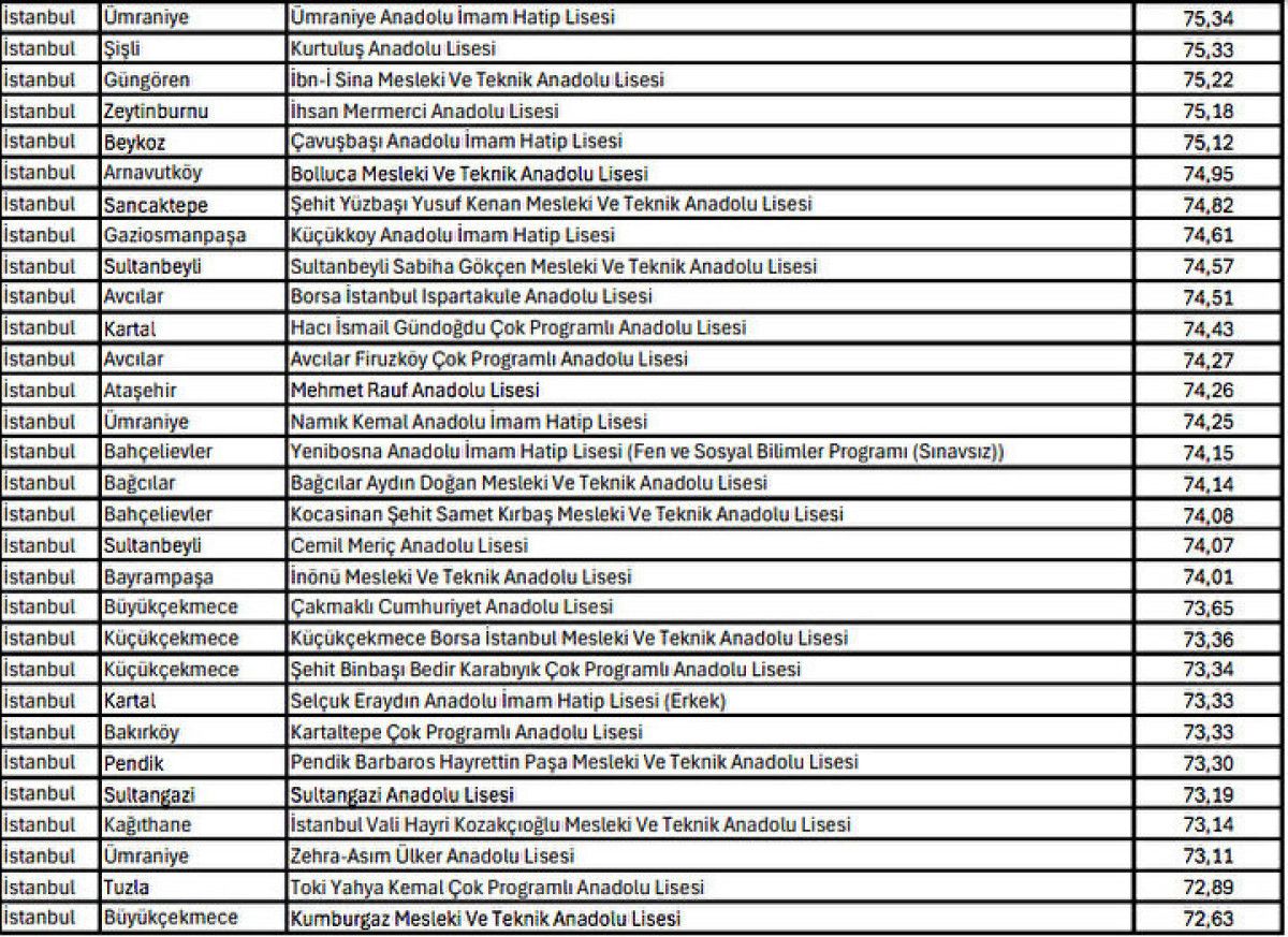 İstanbul’daki Anadolu Liseleri, Fen Liseleri, İmam Hatip Liseleri ve Mesleki Teknik Anadolu Liseleri, OBP’ye göre öğrenci kabul eden okullar arasında yer alıyor.