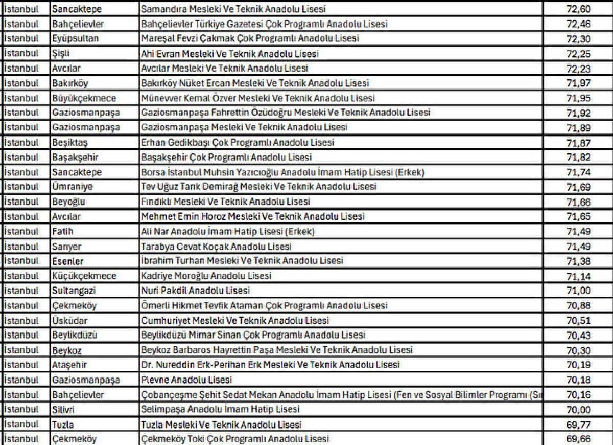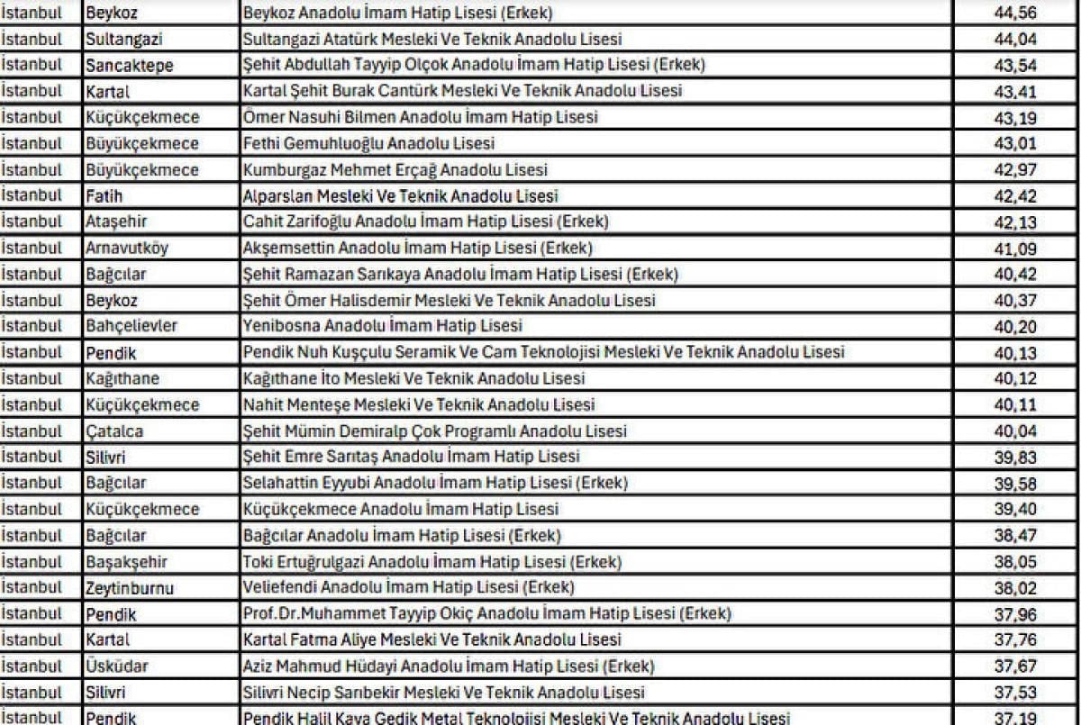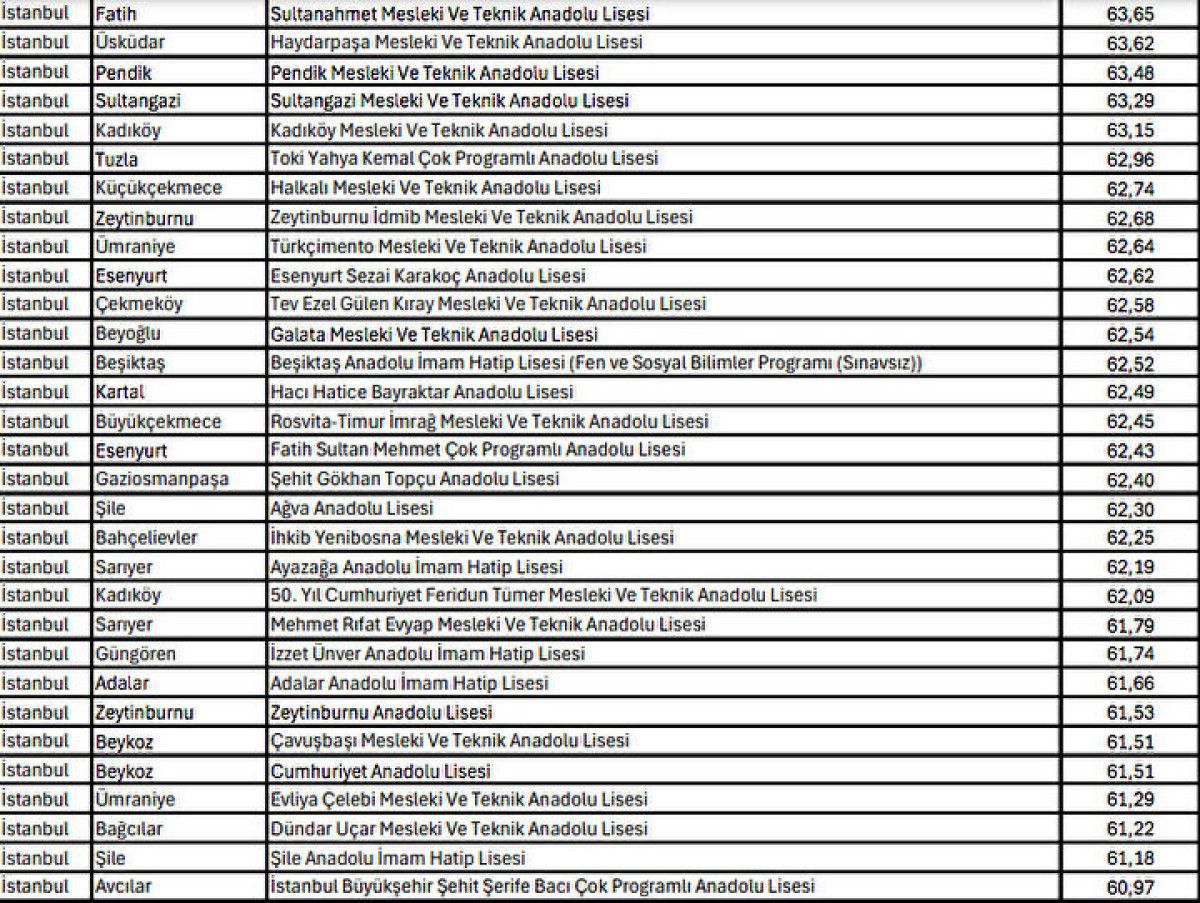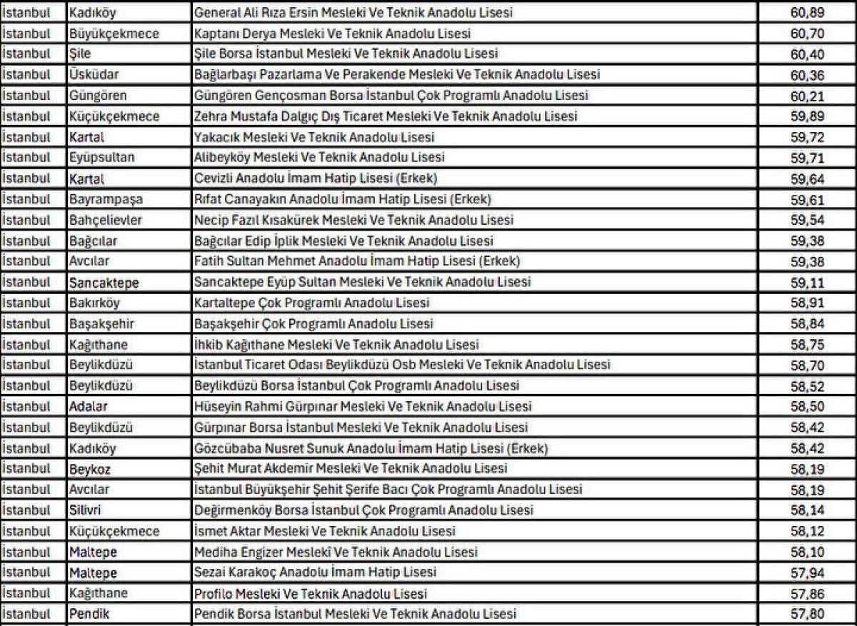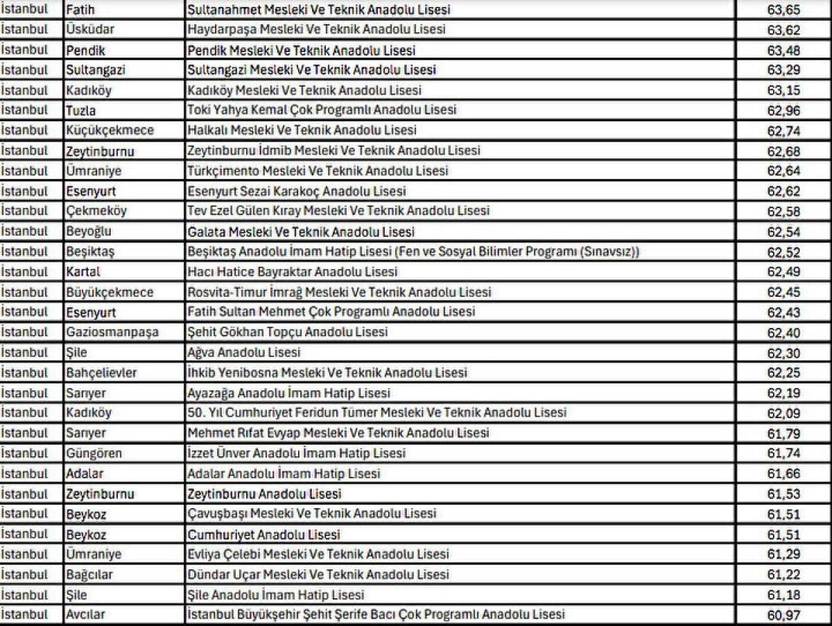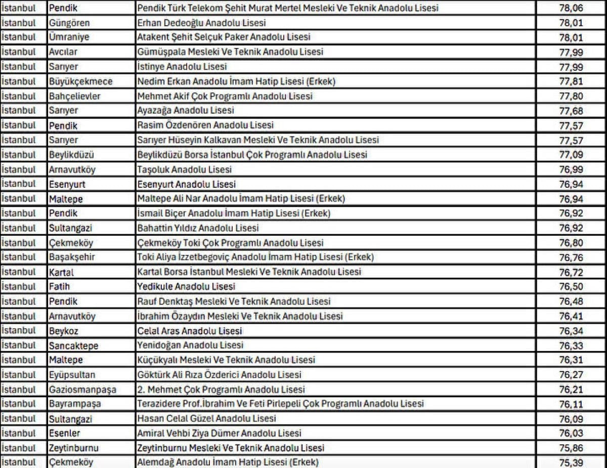 İstanbul’daki Anadolu Liseleri, Fen Liseleri, İmam Hatip Liseleri ve Mesleki Teknik Anadolu Liseleri, OBP’ye göre öğrenci kabul eden okullar arasında yer alıyor.