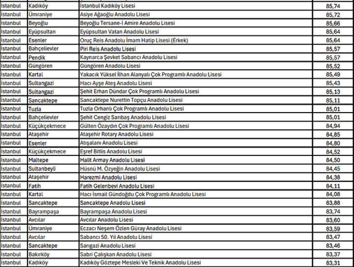 İşte İstanbul’da sınavsız OBP puanıyla öğrenci alan liseler ve OBP taban puanları:
