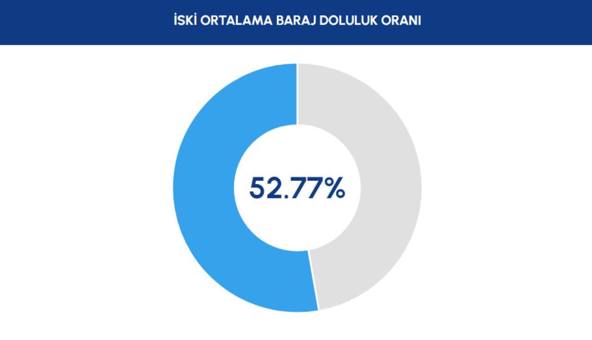 İstanbul'da bulunan tüm barajlardaki su miktarının bugün itibariyle %52.77 olduğu açıklandı.