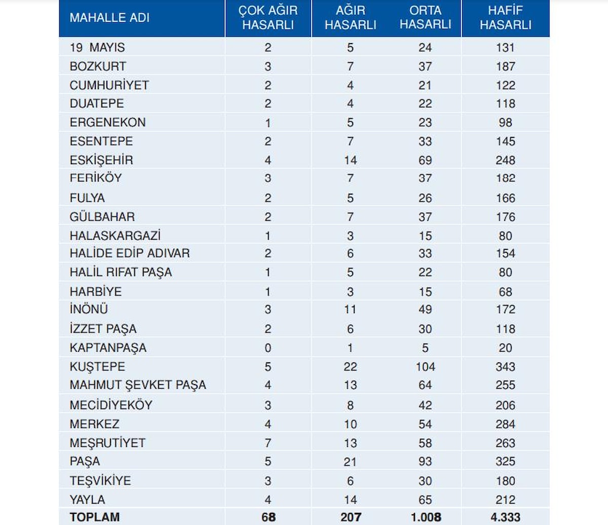 Yaklaşık 19.406 binanın ise, hasarsız veya hafif hasarlı olması beklenmektedir
