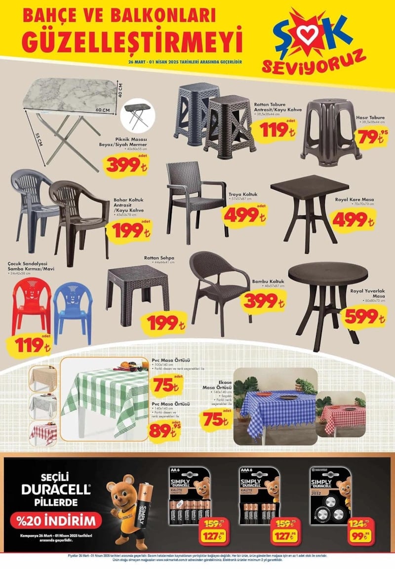 Tabure, masa, sandalye gibi ihtiyaçlarınız var ise, ŞOK'un yeni aktüel afişi tam size göre.
