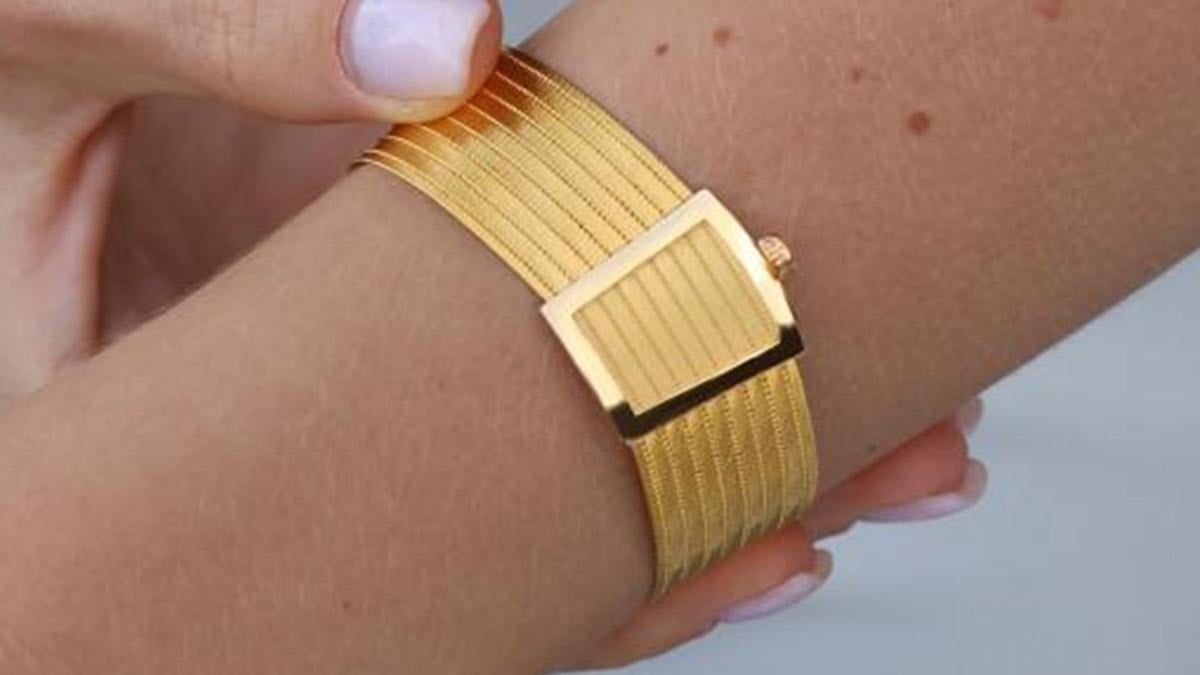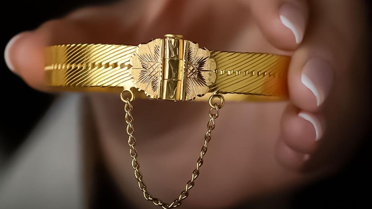 İnce altın tellerinin özenle işlenmesiyle elde edilen hasır bilezikleri, özel örgü teknikleri kullanılarak üretiliyor.