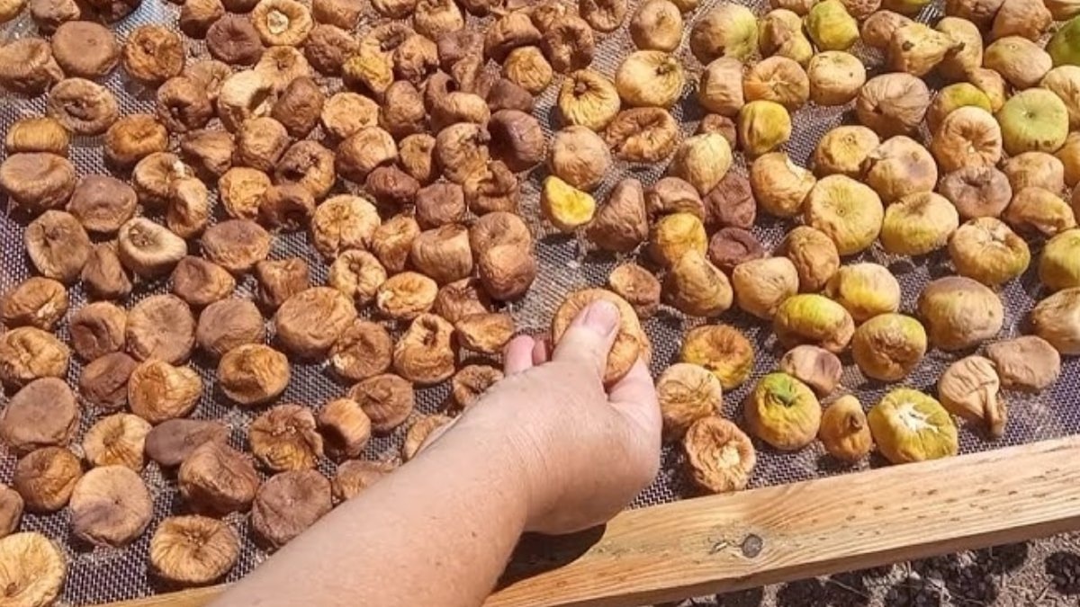 Toplanan incirler, evinin çatısında geleneksel yöntemlerle kurutuluyor.