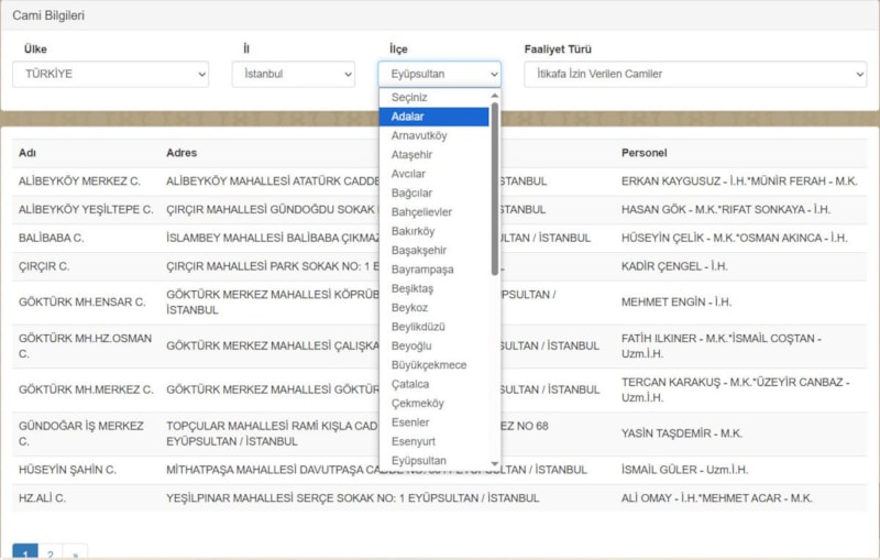 İstanbul Müftülüğü, enderun usulü ve hatimle teravih namazı kılınacak, itikafa girilecek, Sakal-ı Şerif'in ziyaret edileceği, tefsirli mukabele yapılacak ve 7 gün 24 saat açık tutulacak camilerin isimlerini yayımladı.