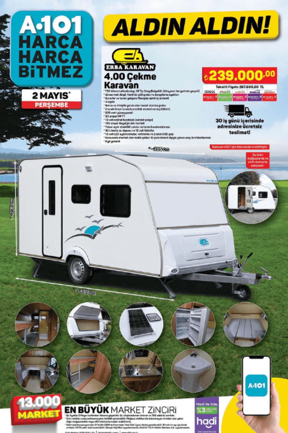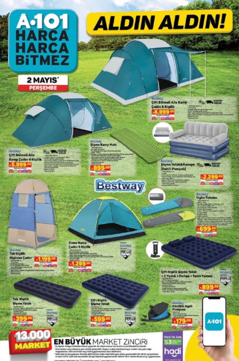 Çekme karavan, kamp sandalyesi, çadır, şişme yatak ve daha fazlası, 2 Mayıs'tan itibaren A101 raflarında yerini alacak.