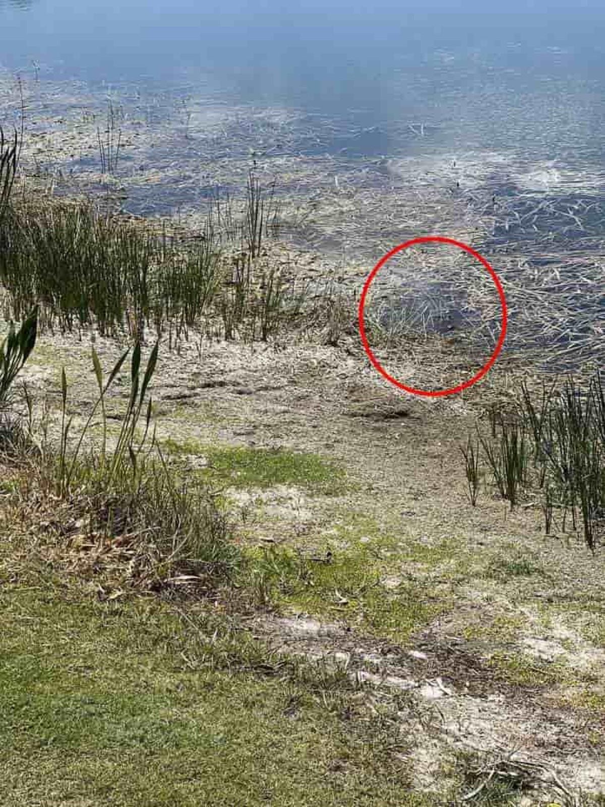 Tekrar bakın; Timsah gölde göz önünde saklanıyor.