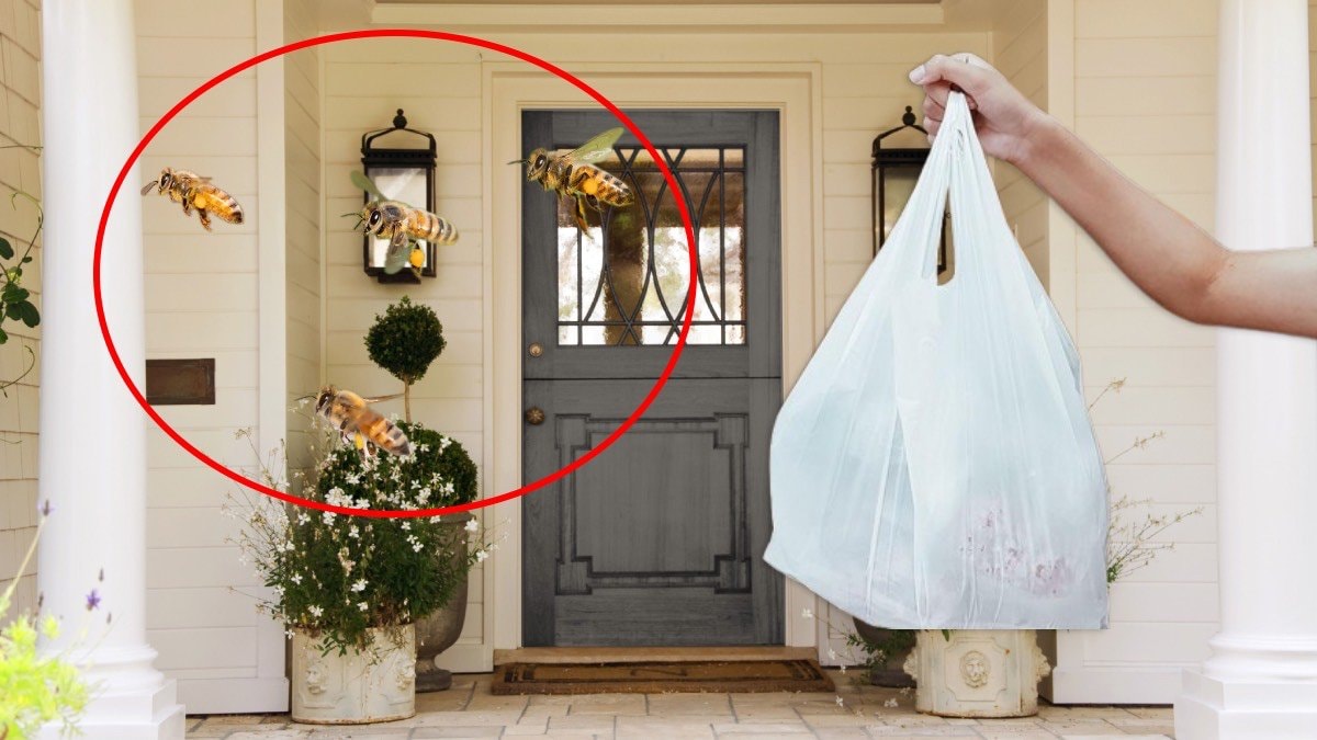 Poşeti hafifçe şişirip kapıya asın. Böylece arılar poşeti görünce uzaklaşacaktır.