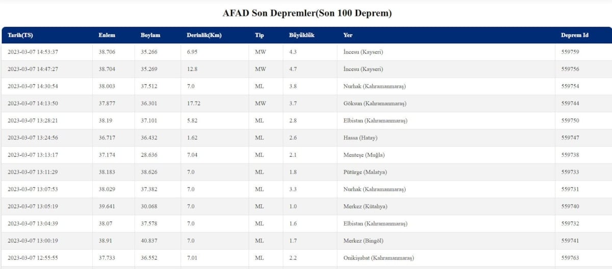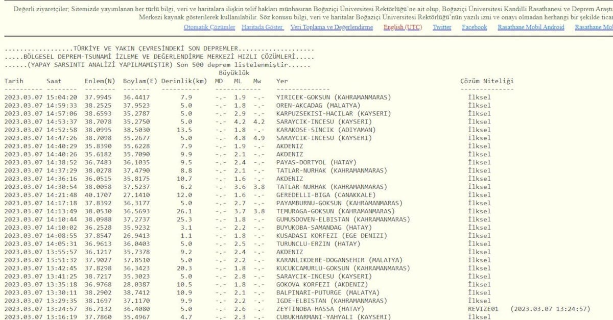 İşte Kandilli Rasathanesi'nin 7 Mart 2023 deprem verileri: