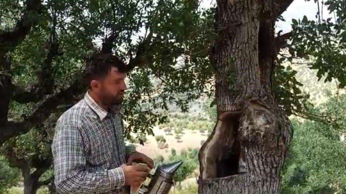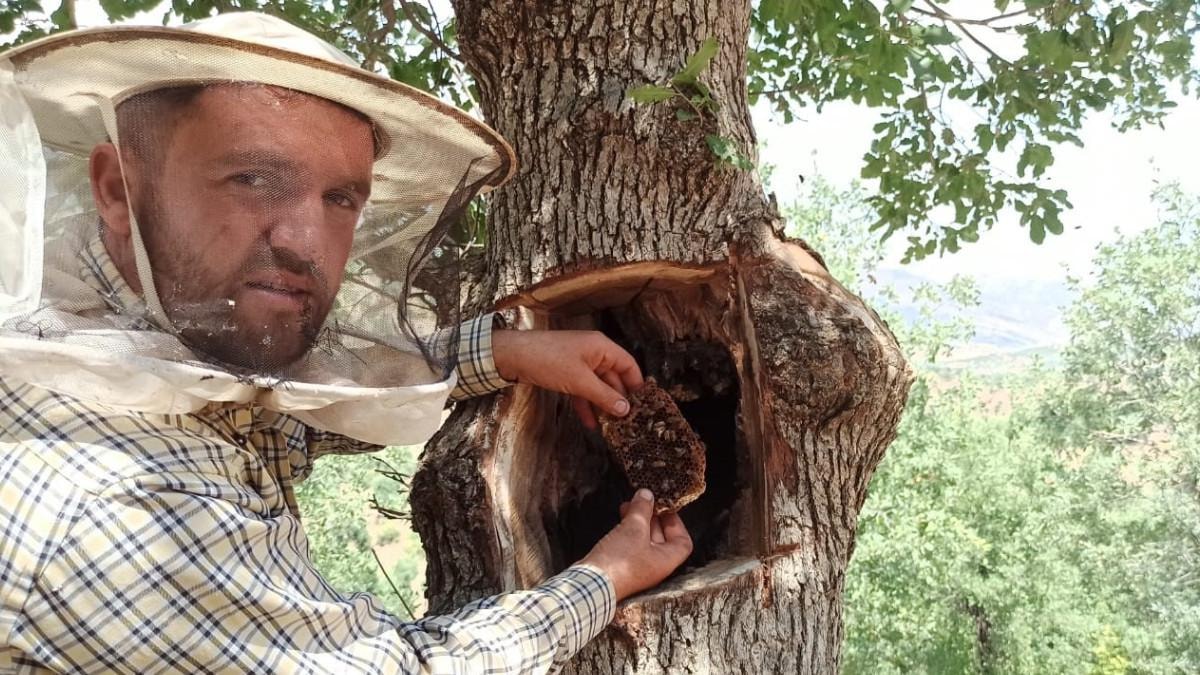 Ömer Ağduk, ailesiyle birlikte Dereiçi köyünde arıcılık yapıyor ve ormanlık bölgelerde bulduğu arıların kovuklarına göz kulak oluyor.