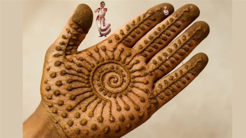 Bu doğal illüzyon sanatında, avuç içine yapılmış kına desenleri arasında gizlenmiş dans eden kız figürlerini fark etmek hiç de kolay değil.